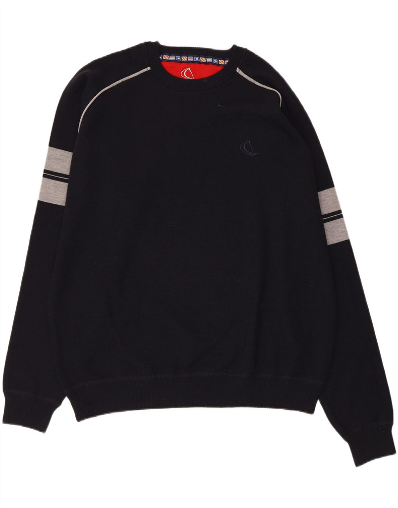 SETTEBELLO Mens Roll Neck Jumper Sweater Medium Navy Blue Striped Vintage Settebello and Second-Hand Settebello from Messina Hembry