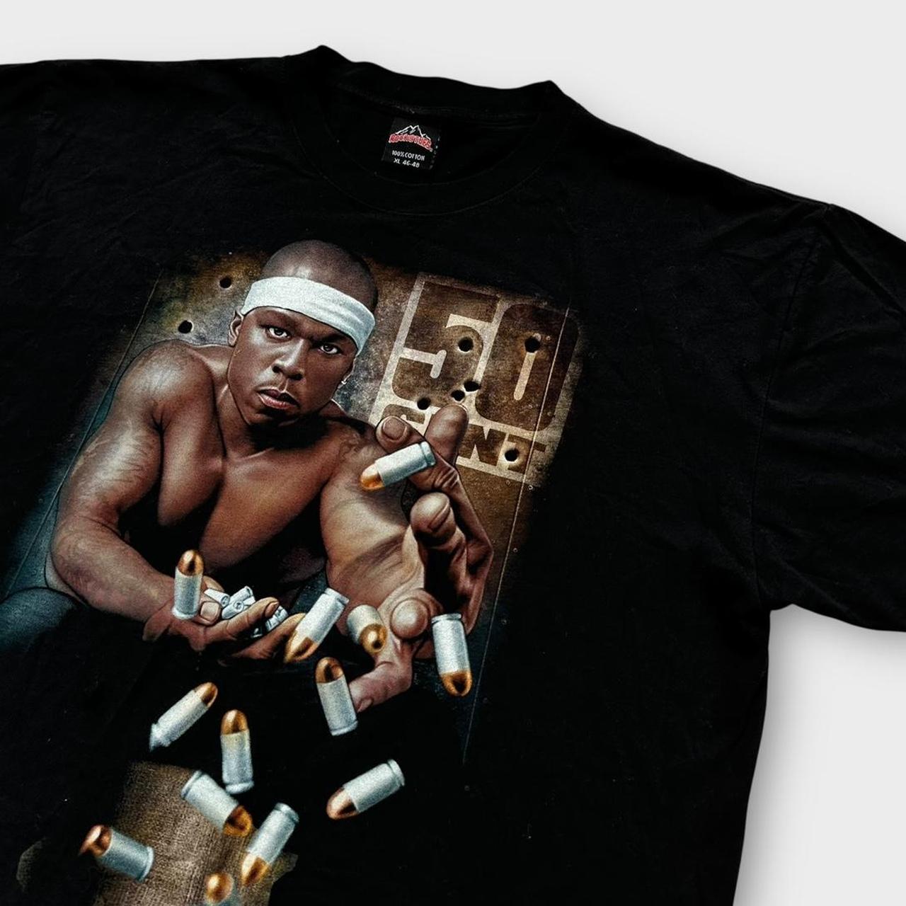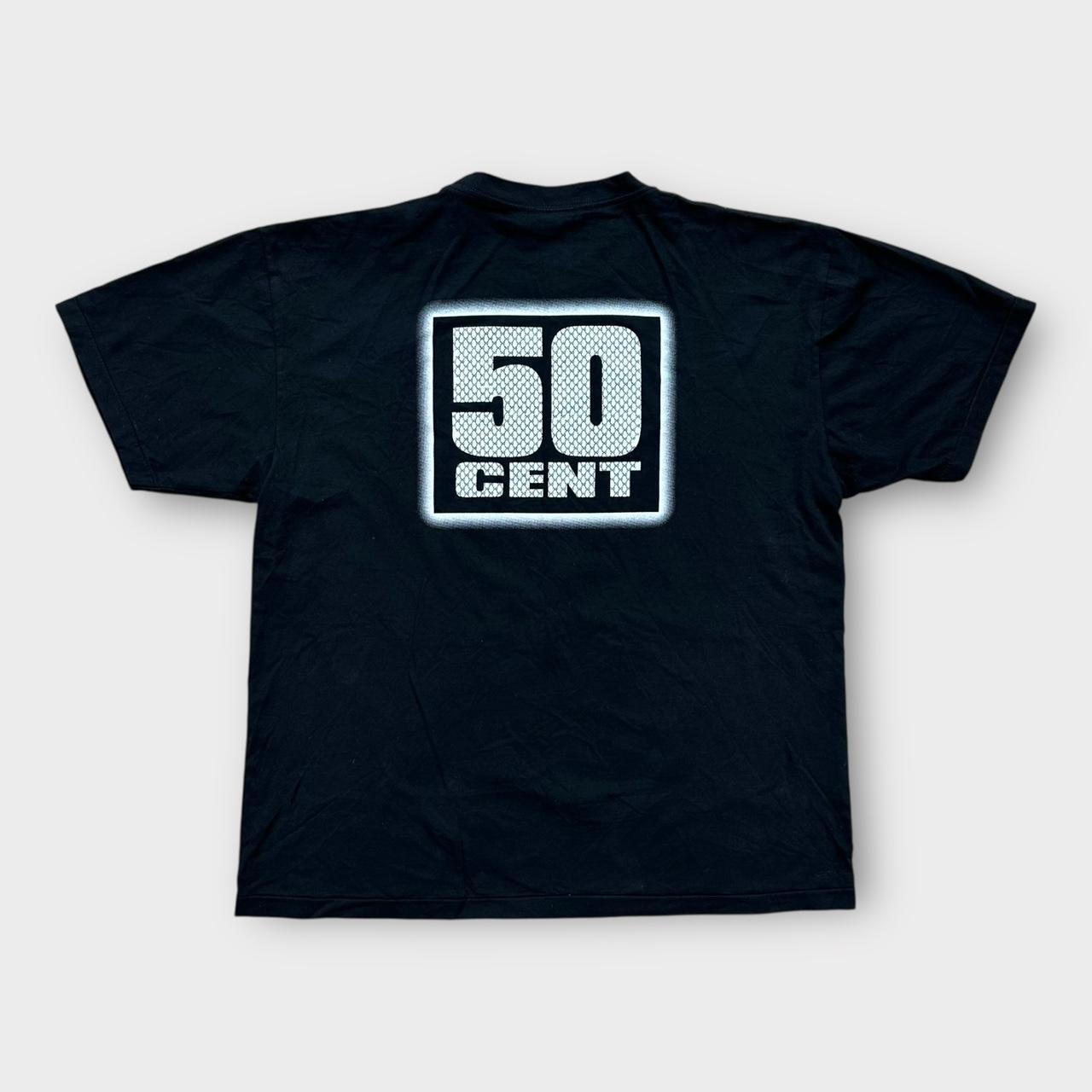 Czarna koszulka z grafiką 50 Cent w stylu vintage z początku XXI wieku, z nadrukiem na piersi i plecach