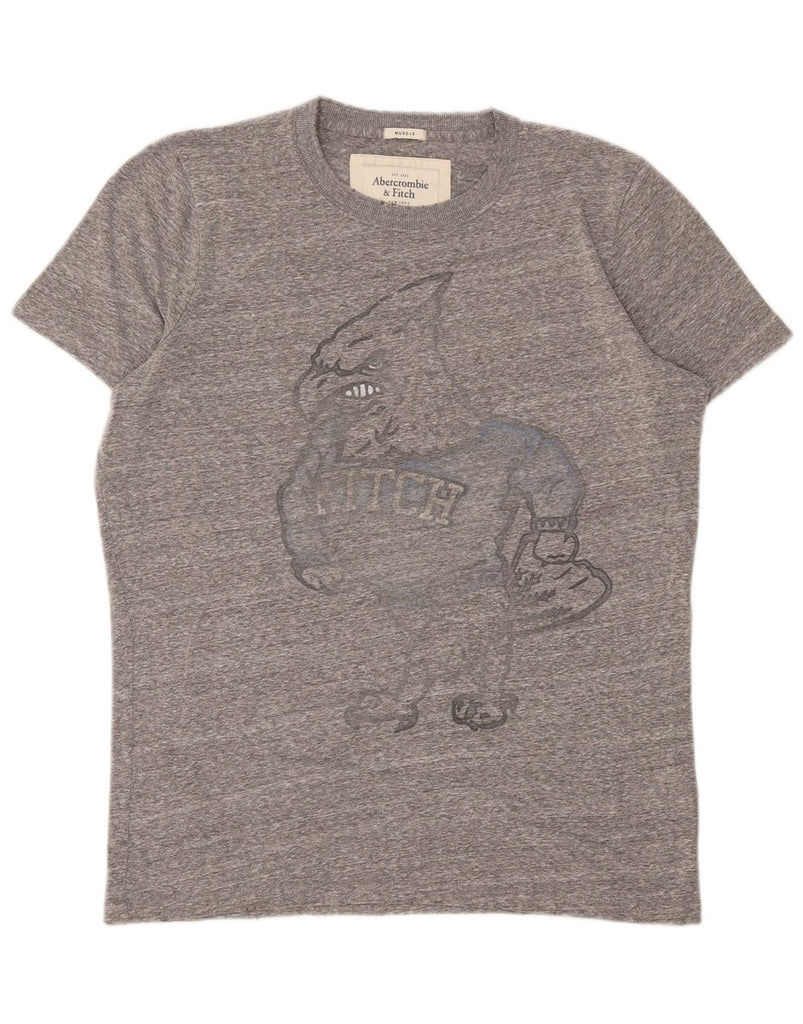 ABERCROMBIE & FITCH Mens Graphic T-Shirt Top Large Grey Cotton