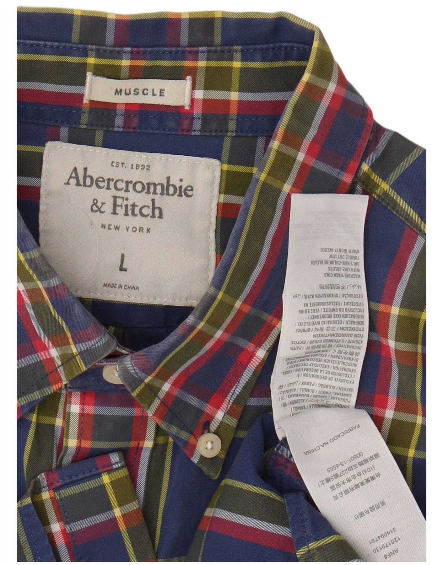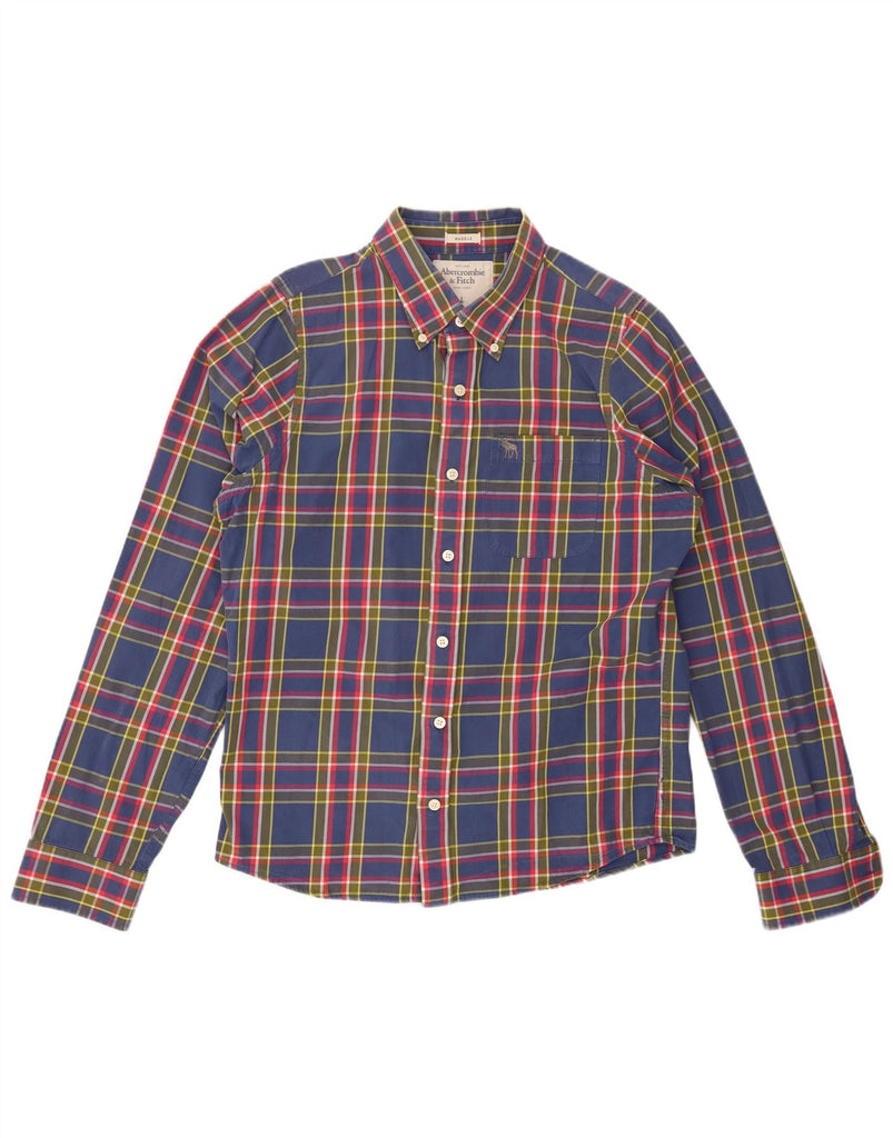 ABERCROMBIE & FITCH Mens Muscle Flannel Shirt Large Blue Check Cotton