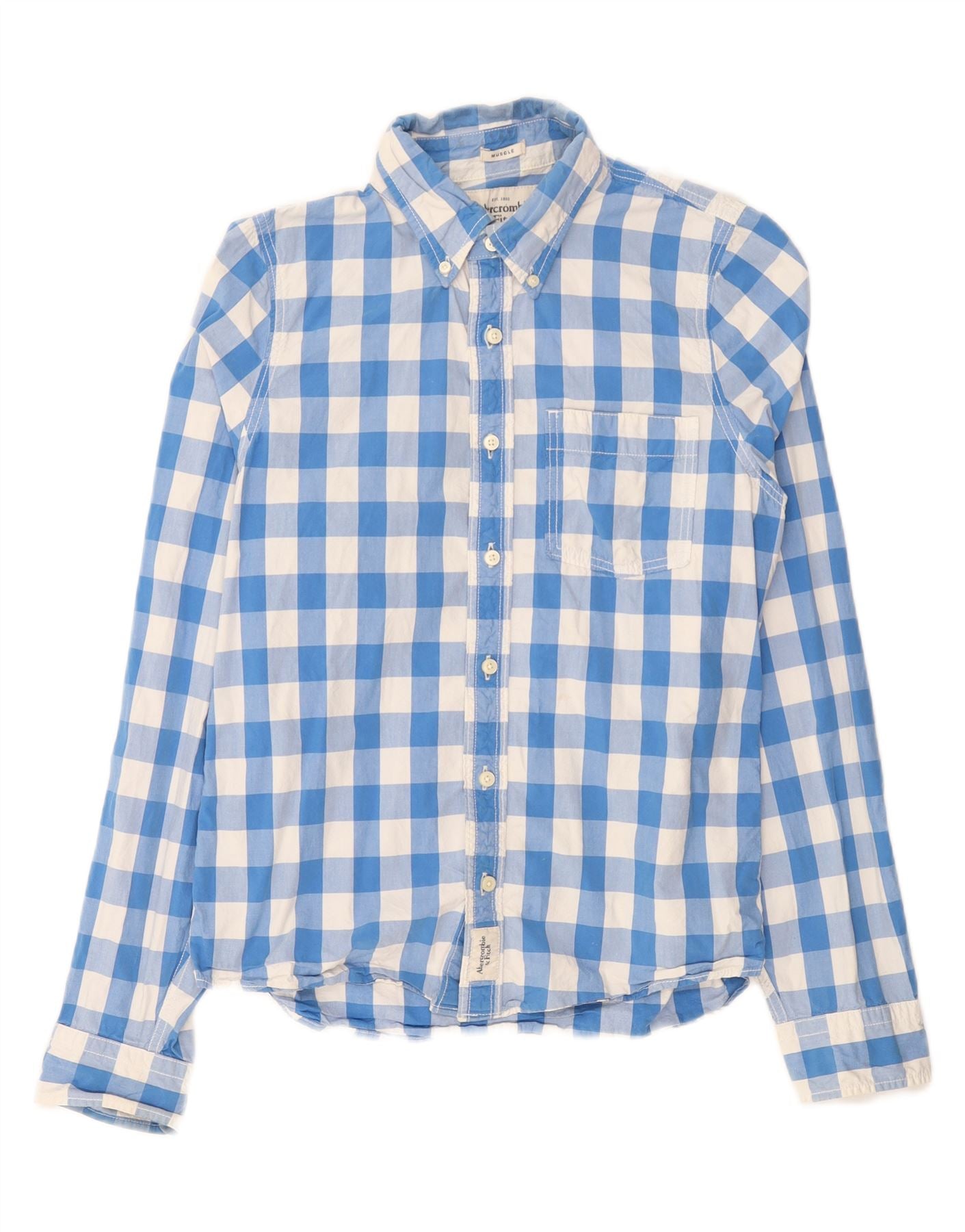 Męska koszula o mięśniach ABERCROMBIE & FITCH XL, niebieska, bawełniana w kratkę