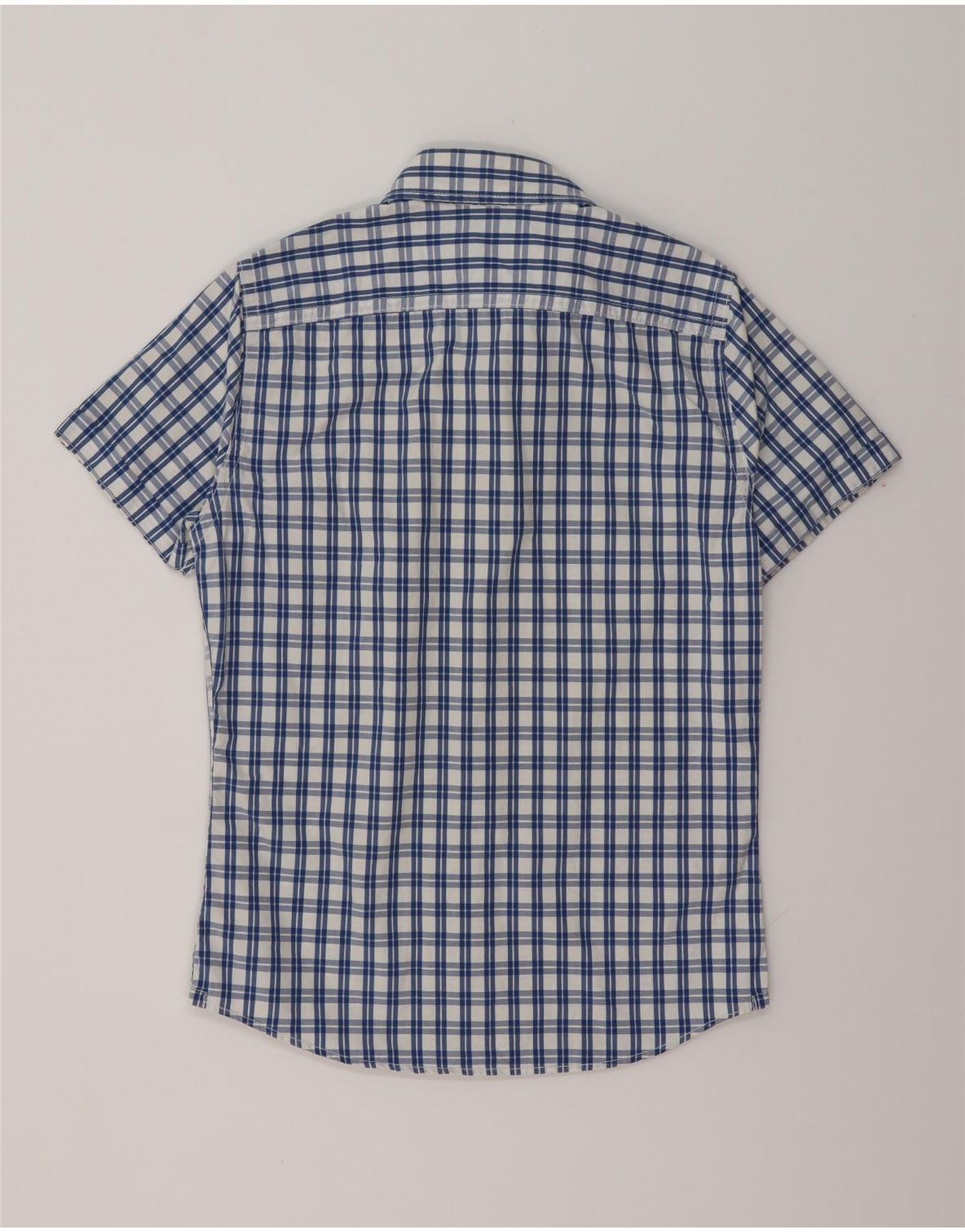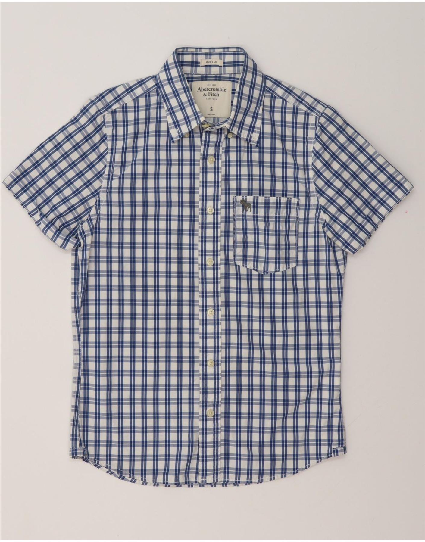 Męska koszula z krótkim rękawem ABERCROMBIE & FITCH z krótkim rękawem, mała, niebieska, bawełniana w kratkę