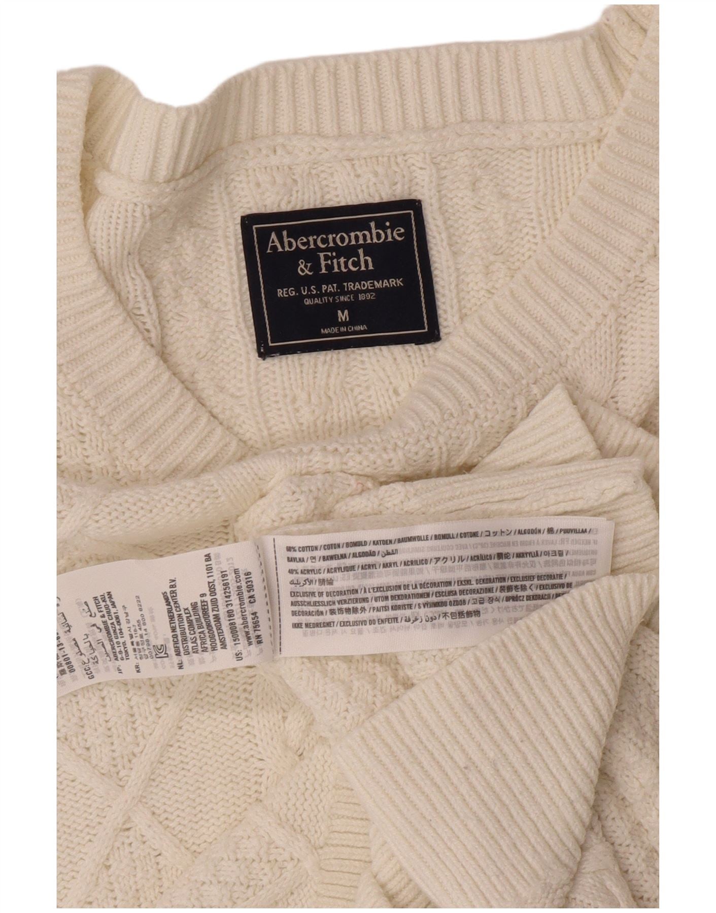 Damski sweter z okrągłym dekoltem ABERCROMBIE & FITCH UK 14 Średni biały