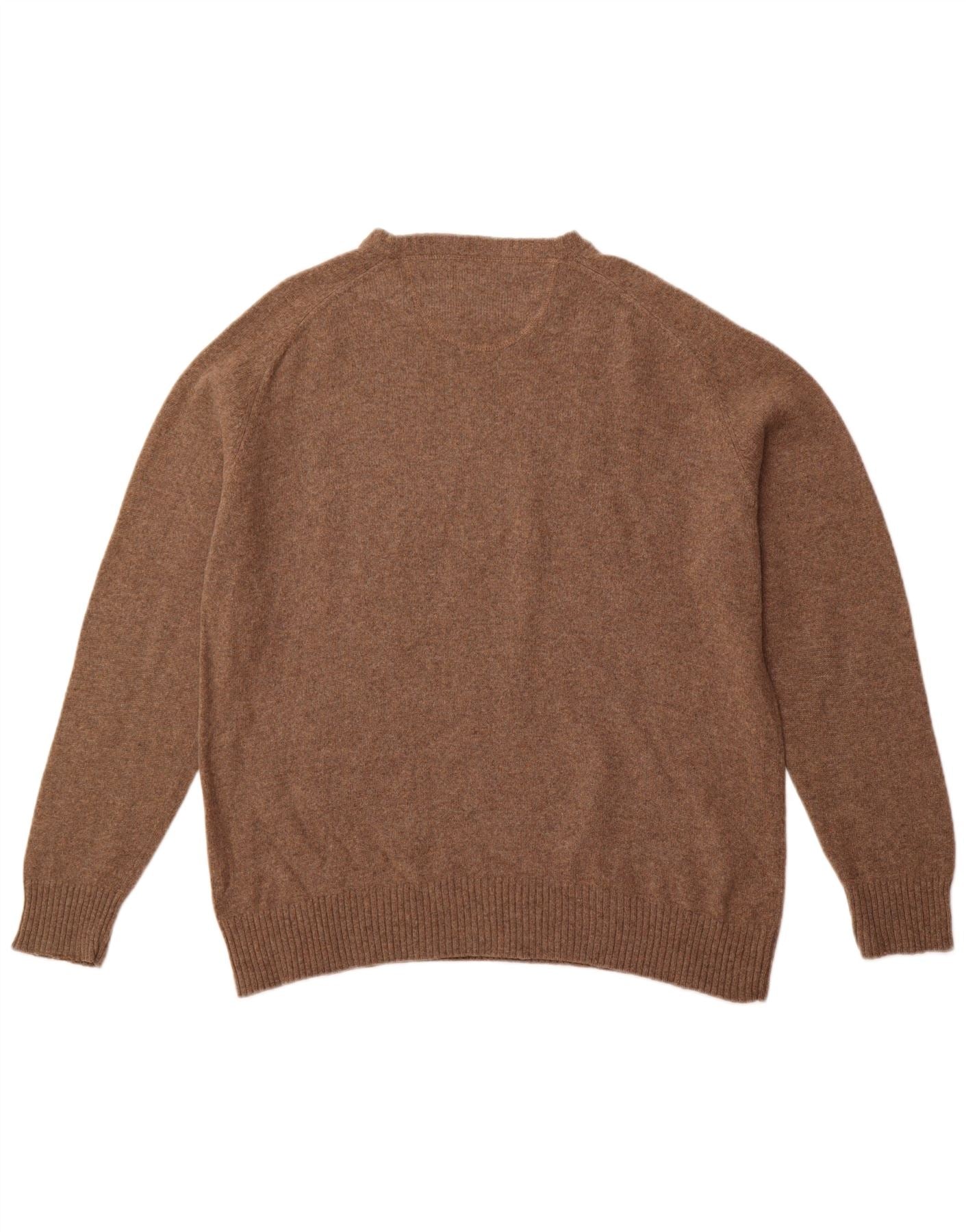ABRAMS Męski sweter z okrągłym dekoltem 2XL Brązowa wełna owcza