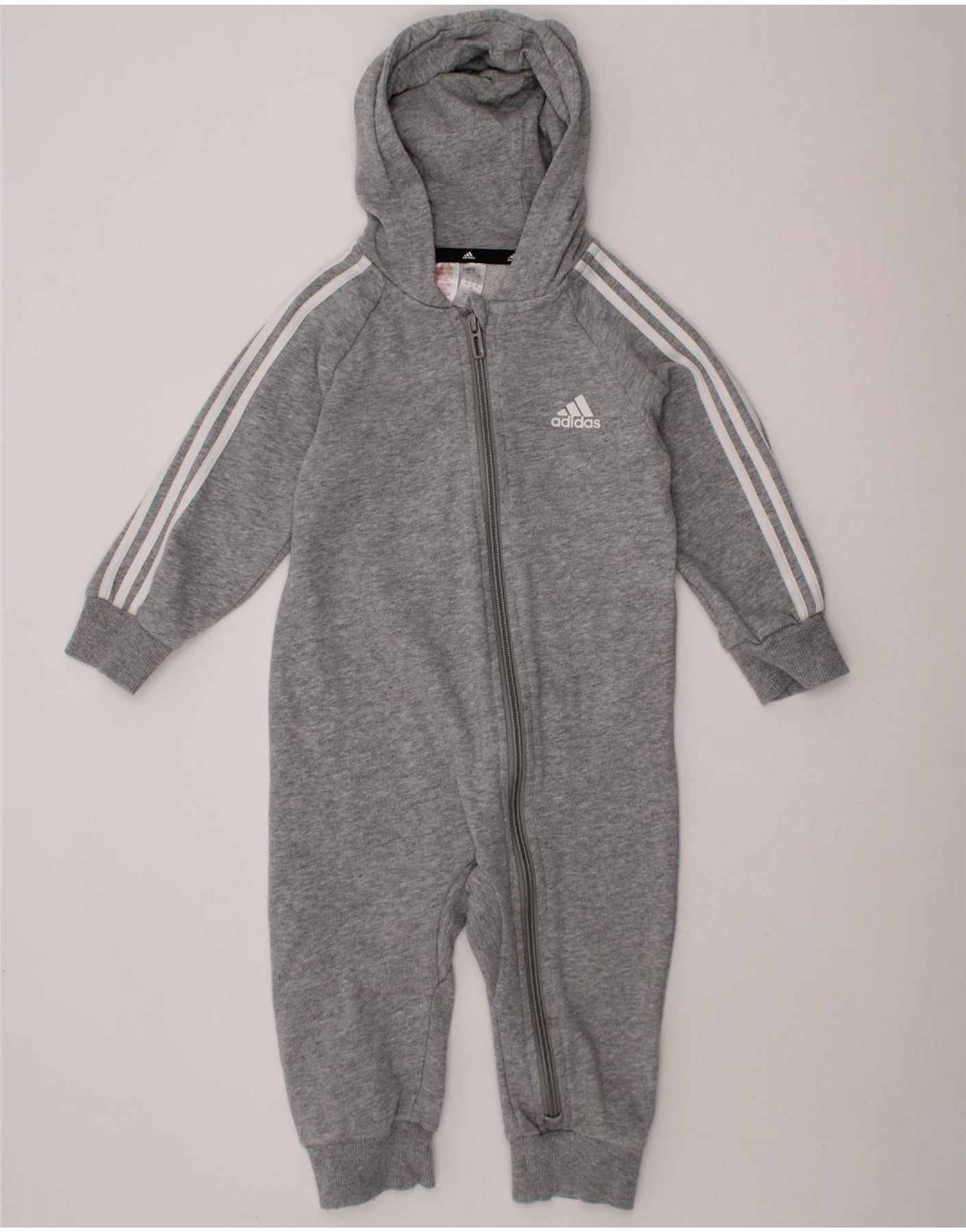 ADIDAS Baby Boys Hooded Long Sleeve Jumpsuit 12-18 Months Grey Cotton