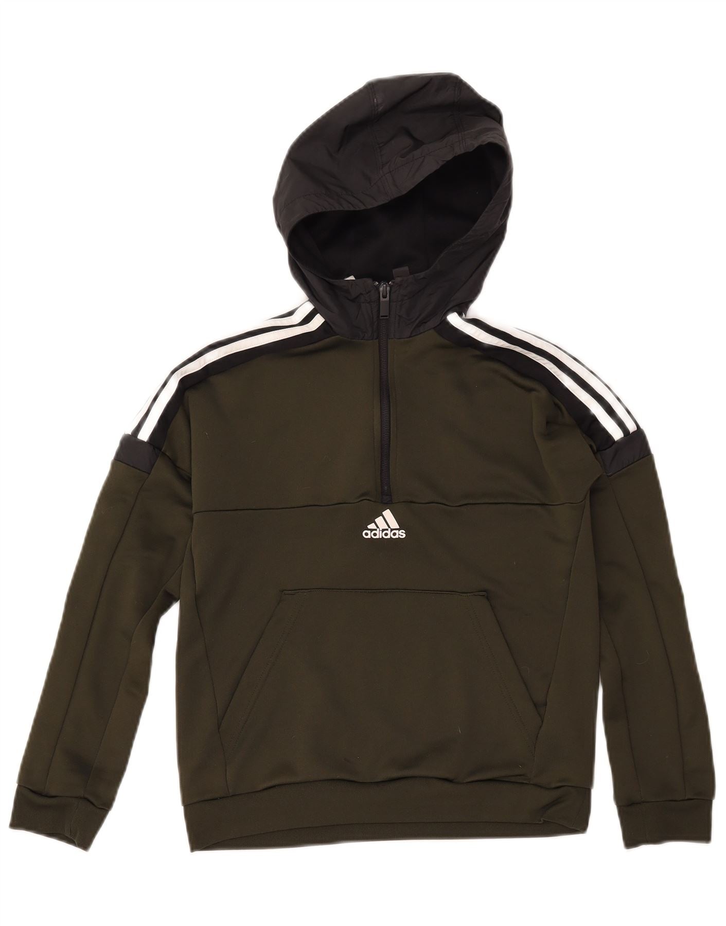 Chłopięcy sweter ADIDAS Aeroready z kapturem i zamkiem błyskawicznym 11-12 lat Zielony poliester