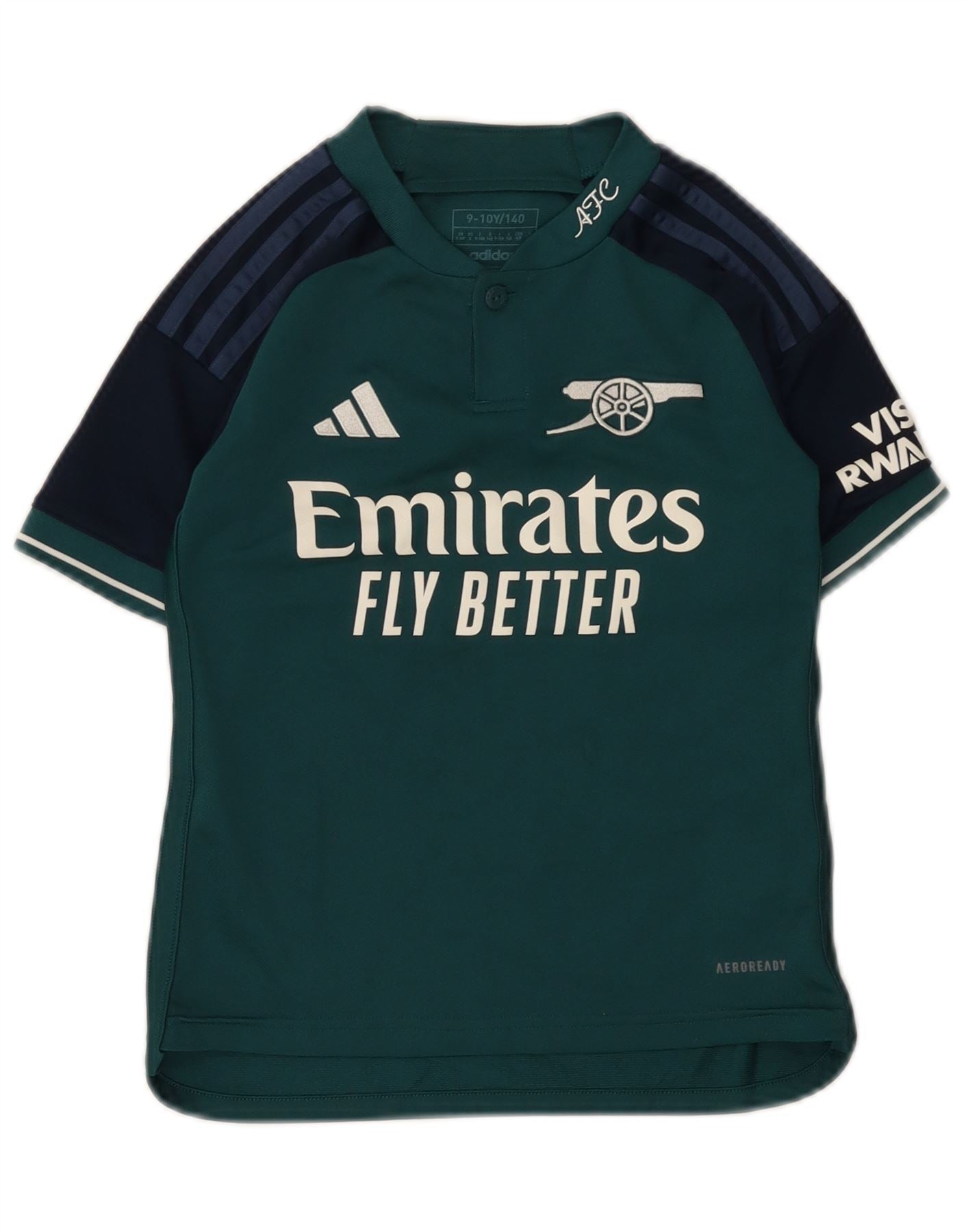 Chłopięcy T-shirt ADIDAS Fly Emirates z grafiką na 9-10 lat, zielony, z blokami kolorów
