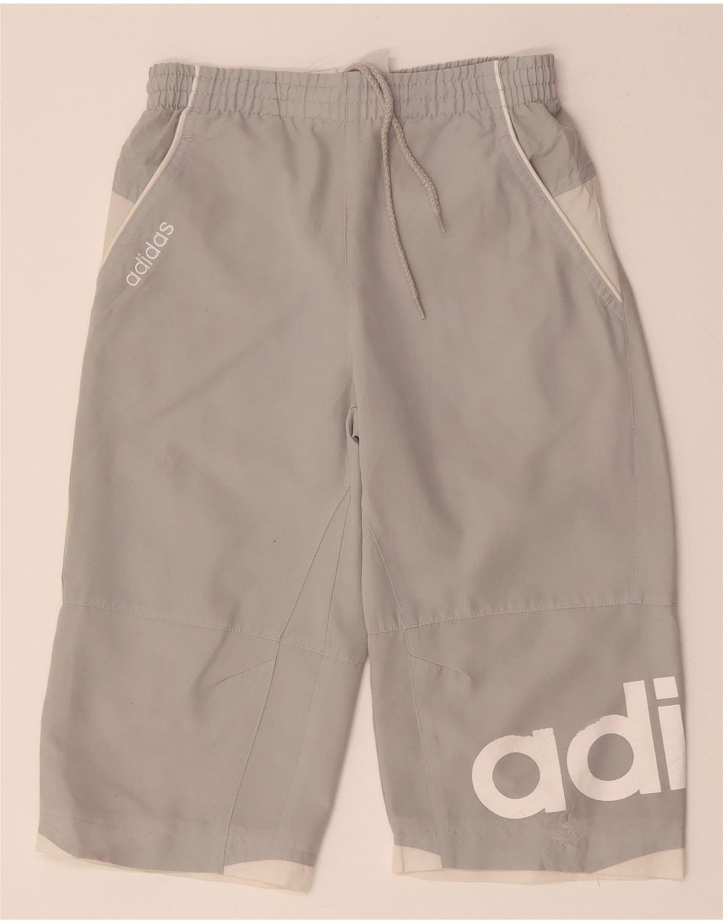 Chłopięce spodenki sportowe ADIDAS Bermudy z grafiką, 15-16 lat, szare, z blokami kolorów