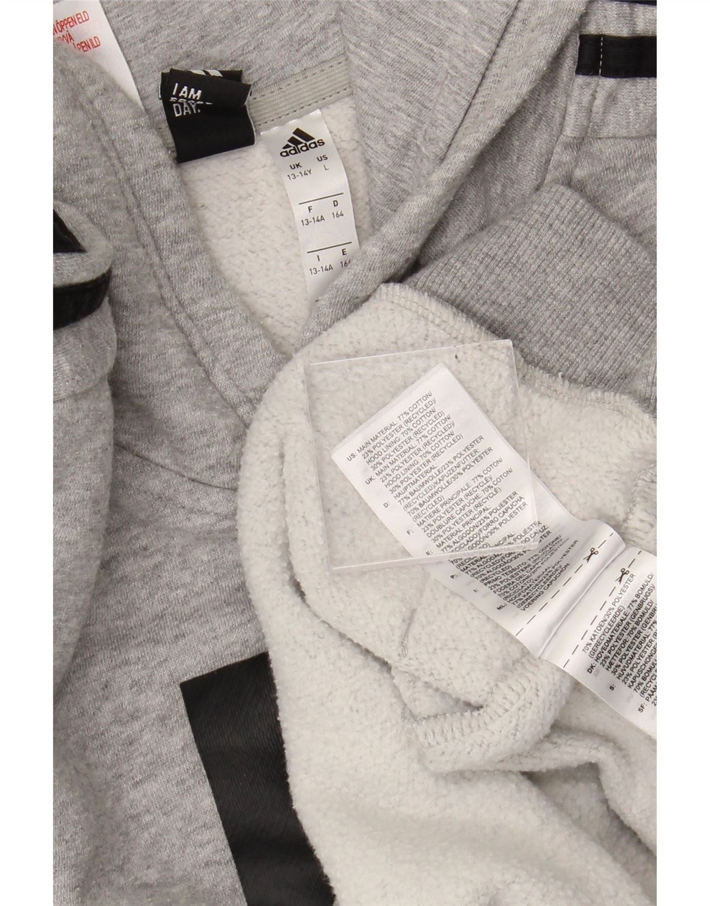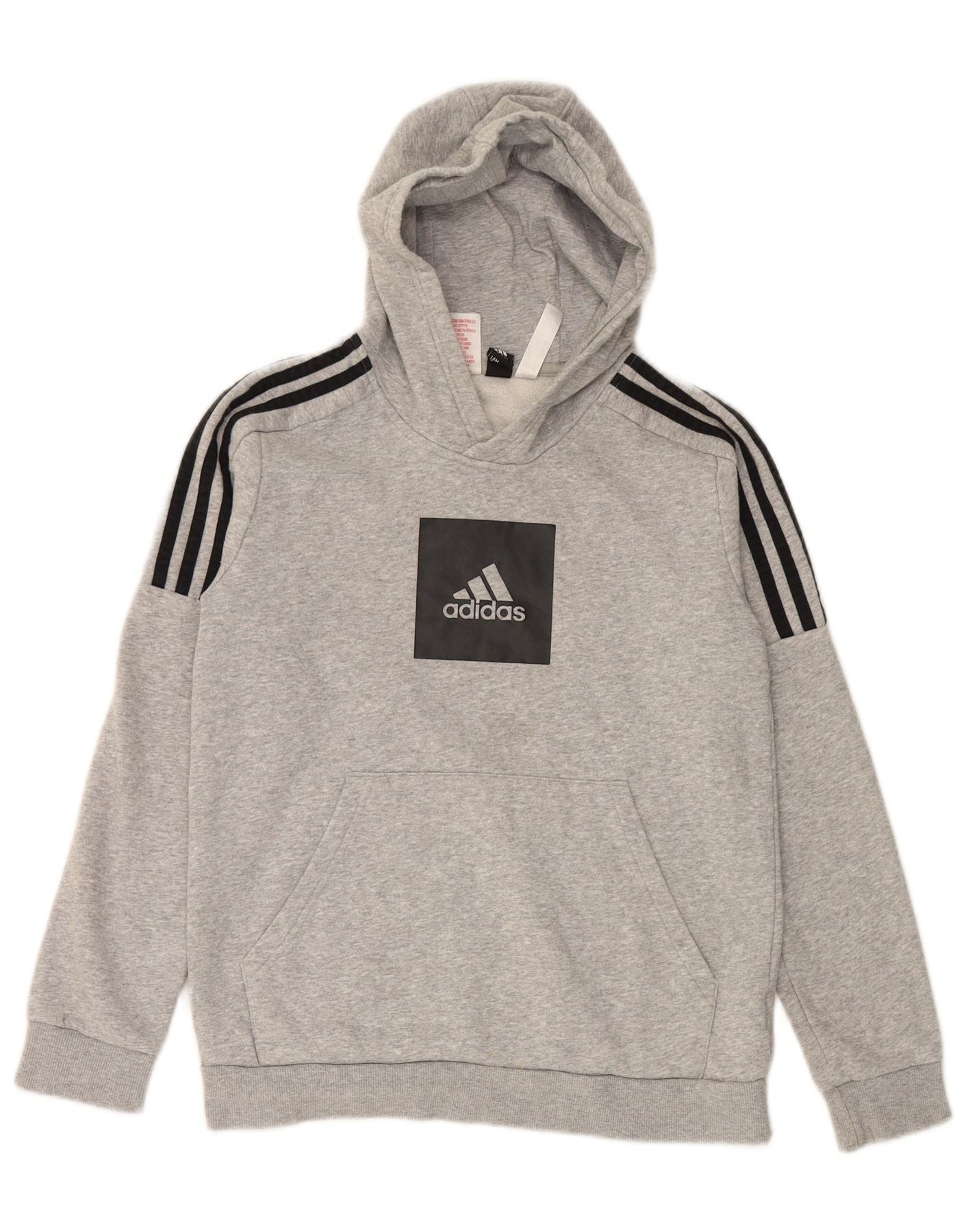 Chłopięcy sweter z kapturem ADIDAS z grafiką 13-14 lat, szara bawełna