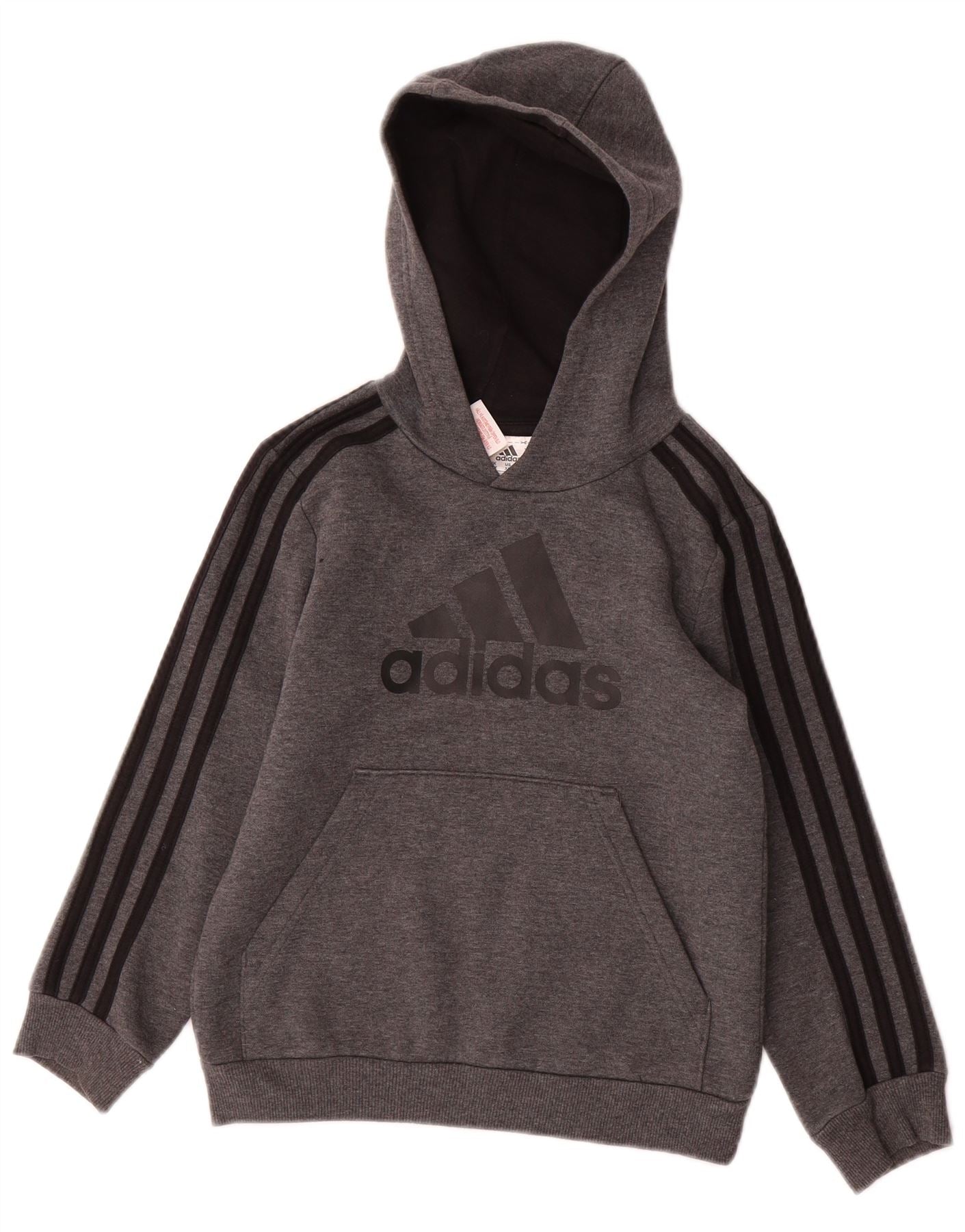 Chłopięcy sweter z kapturem ADIDAS z grafiką, 7-8 lat, szary poliester
