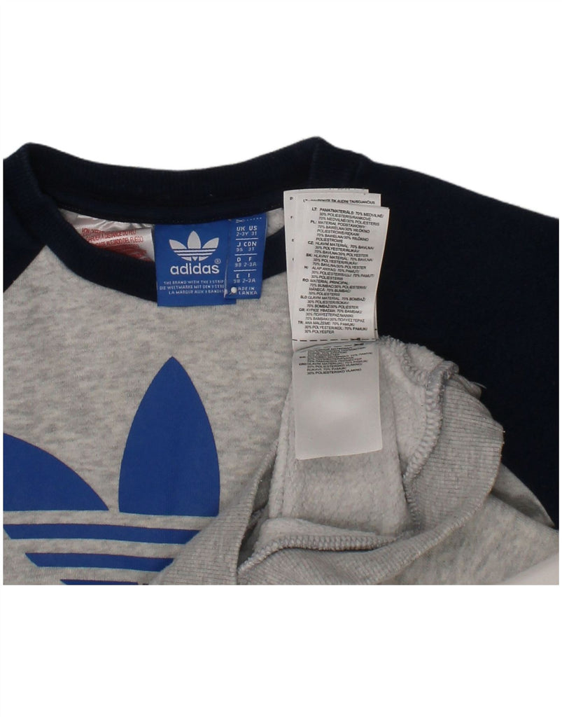 ADIDAS Boys Graphic Sweatshirt Jumper 2-3 Years Grey Colourblock Cotton