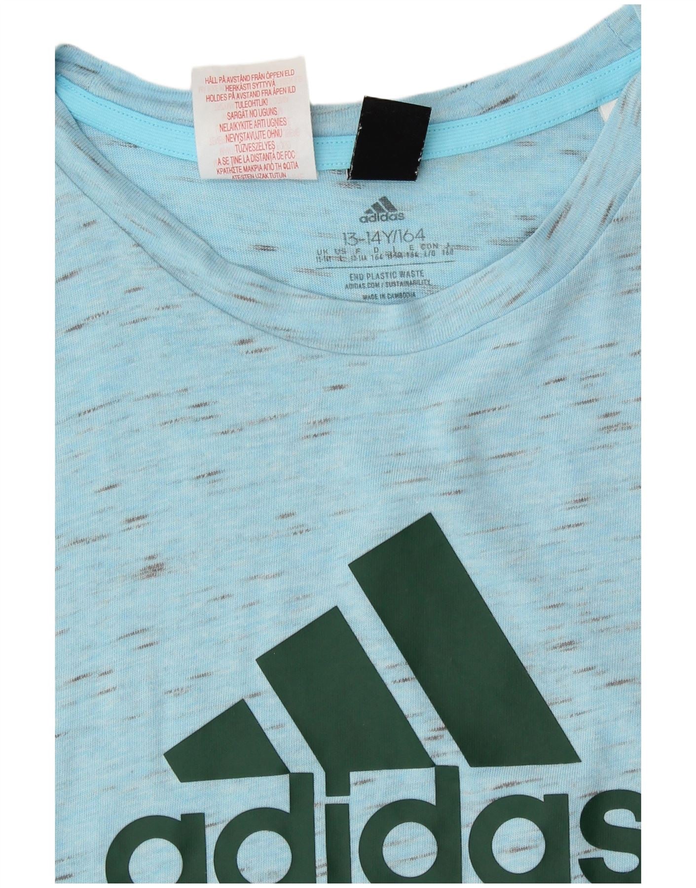 Chłopięca koszulka z grafiką Adidas, 13-14 lat, niebieska bawełna z plamkami