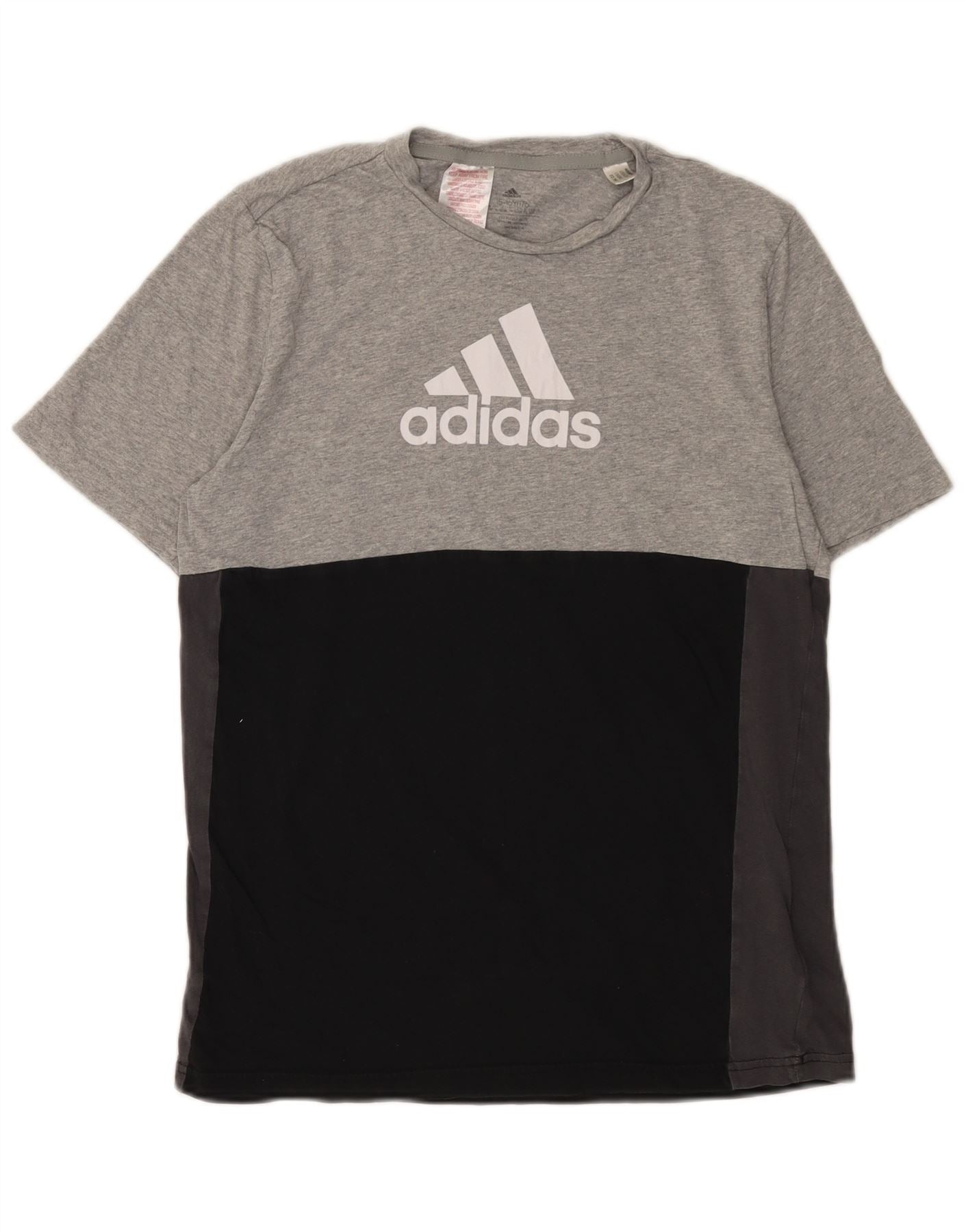 Chłopięcy T-shirt z grafiką ADIDAS, 15-16 lat, szara, bawełniana w bloki kolorów