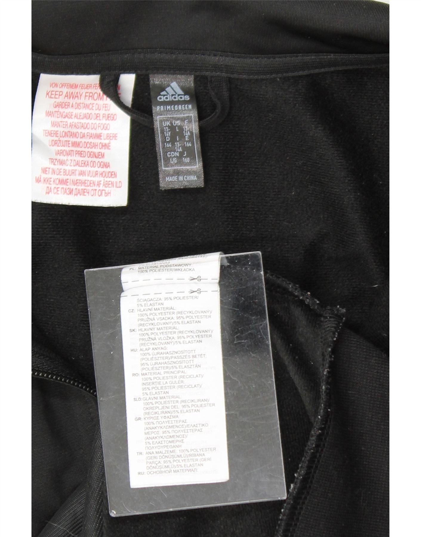 ADIDAS Boys Tracksuit Top Jacket 13-14 Years Black Polyester