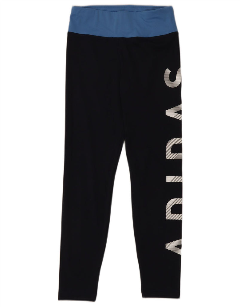 Dziewczęce legginsy ADIDAS Climalite Graphic 11-12 lat, czarne, z blokami kolorów