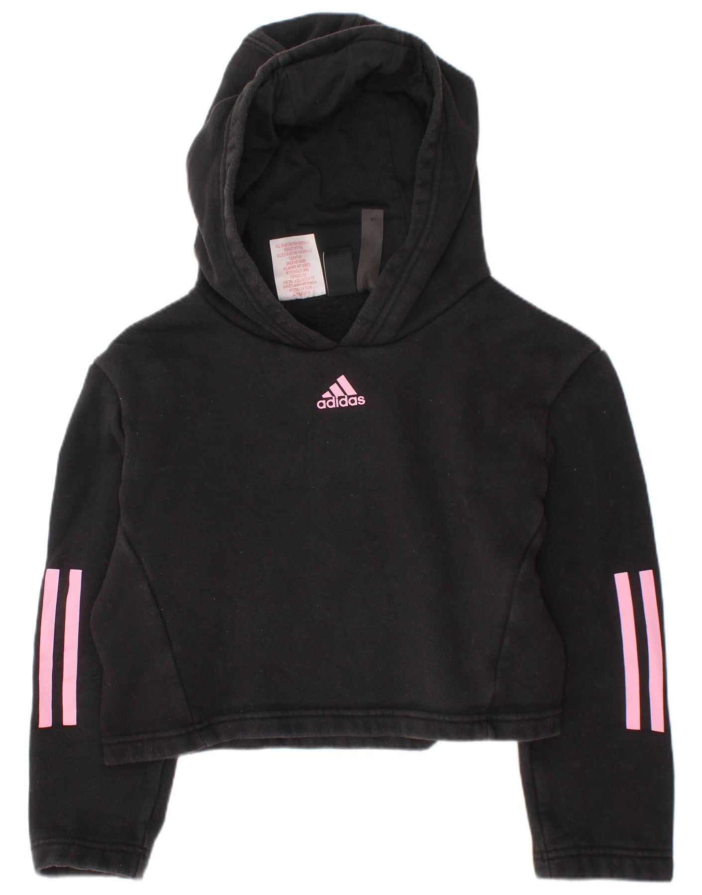 Dziewczęcy sweter z kapturem ADIDAS w wieku 7-8 lat, czarny, bawełniany