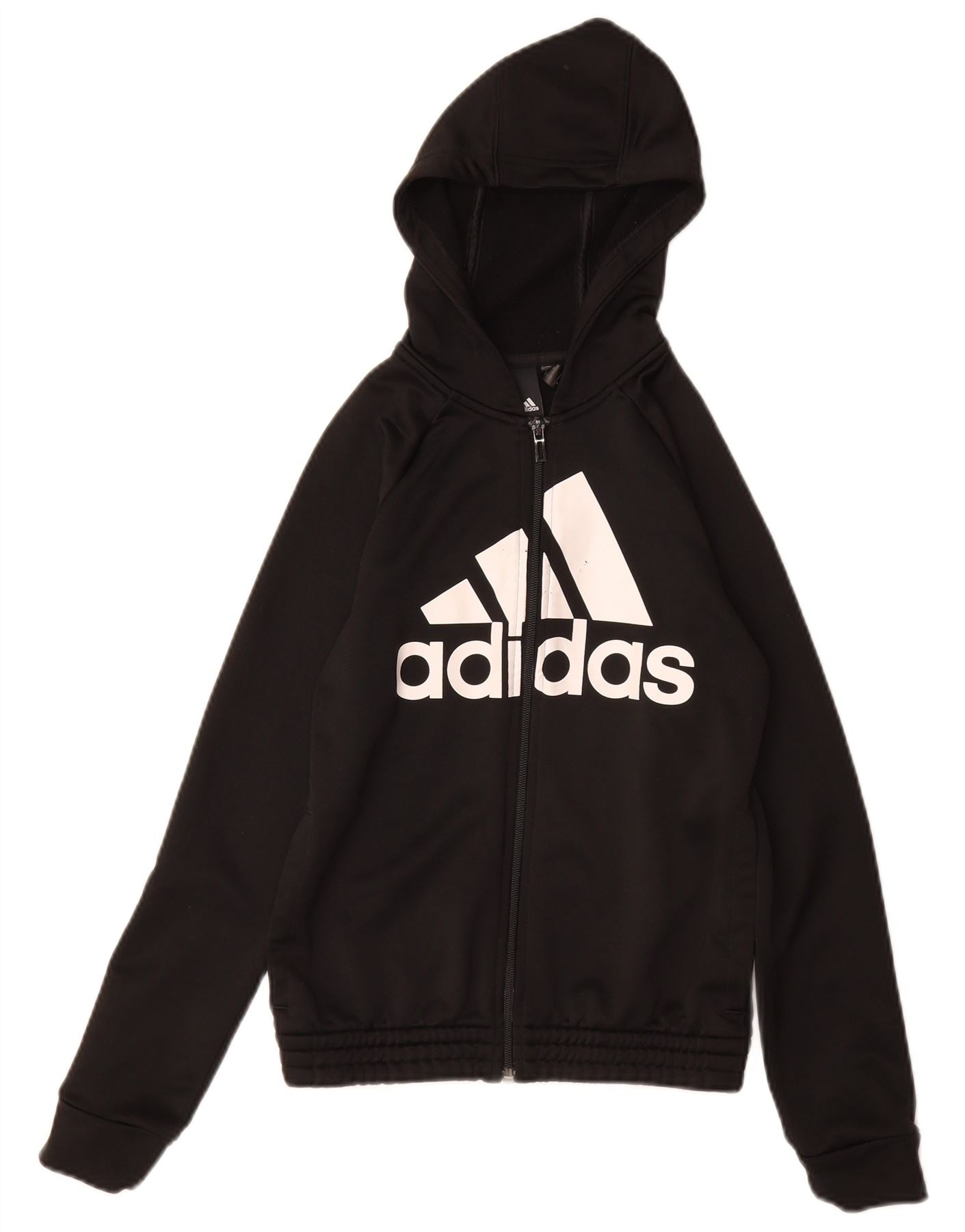 Dziewczęcy sweter z kapturem i grafiką ADIDAS, zapinany na zamek, 11-12 lat, czarny poliester