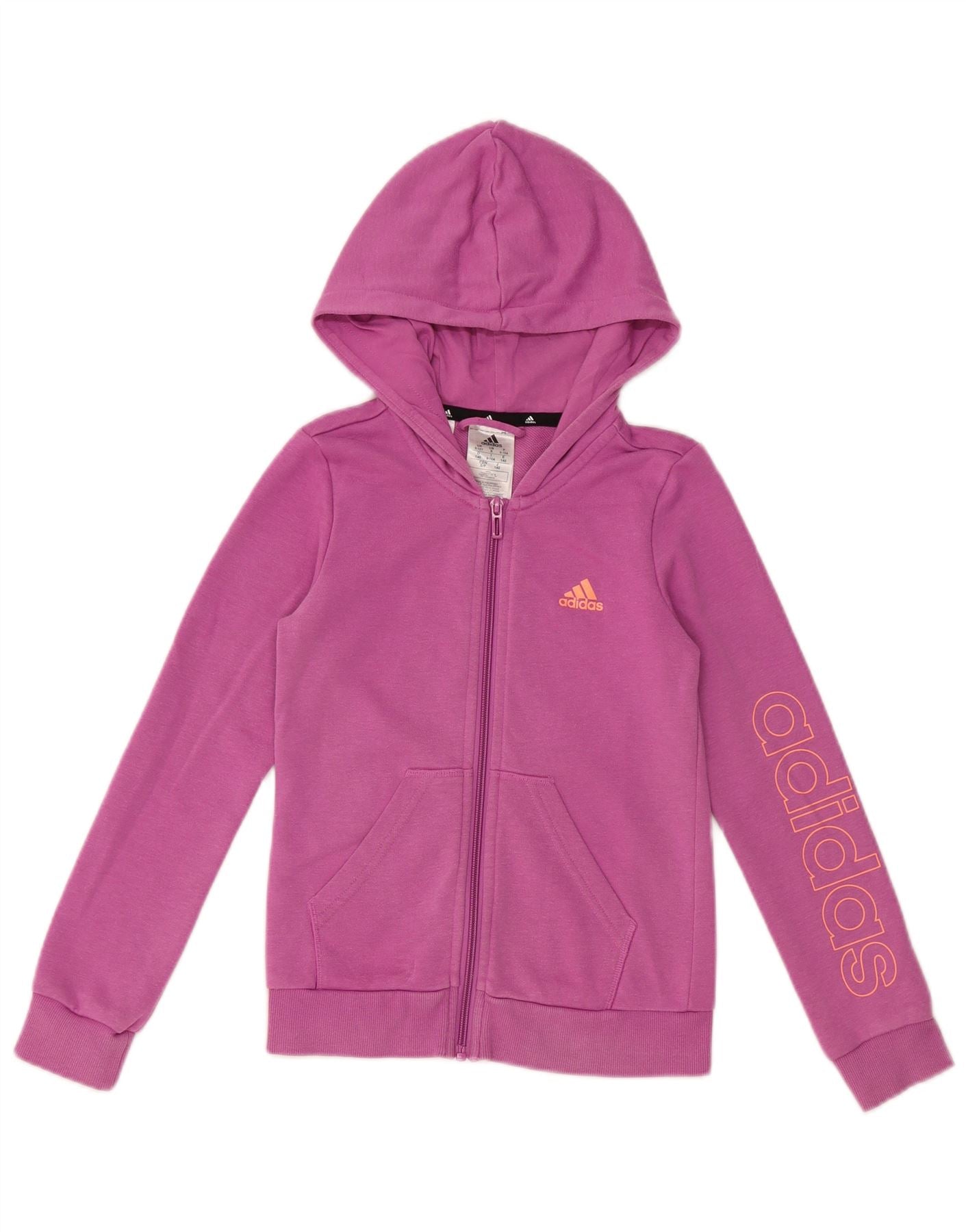 Dziewczęcy sweter z kapturem i grafiką ADIDAS, zapinany na zamek, 9-10 lat, fioletowa bawełna