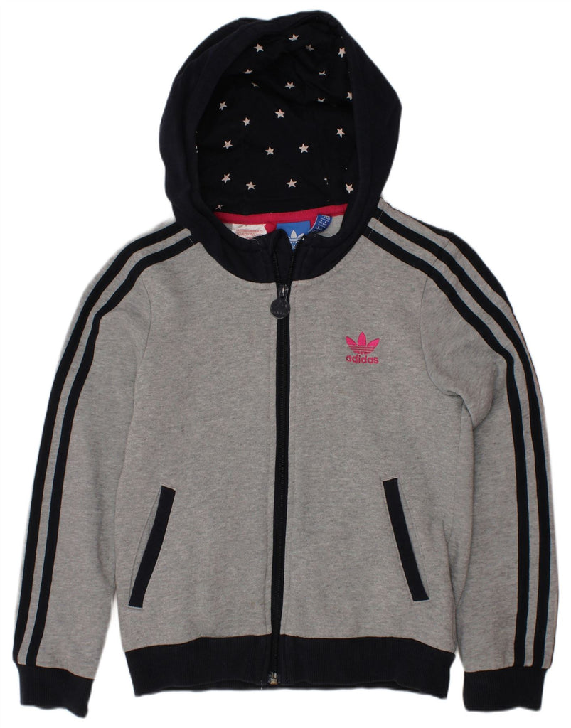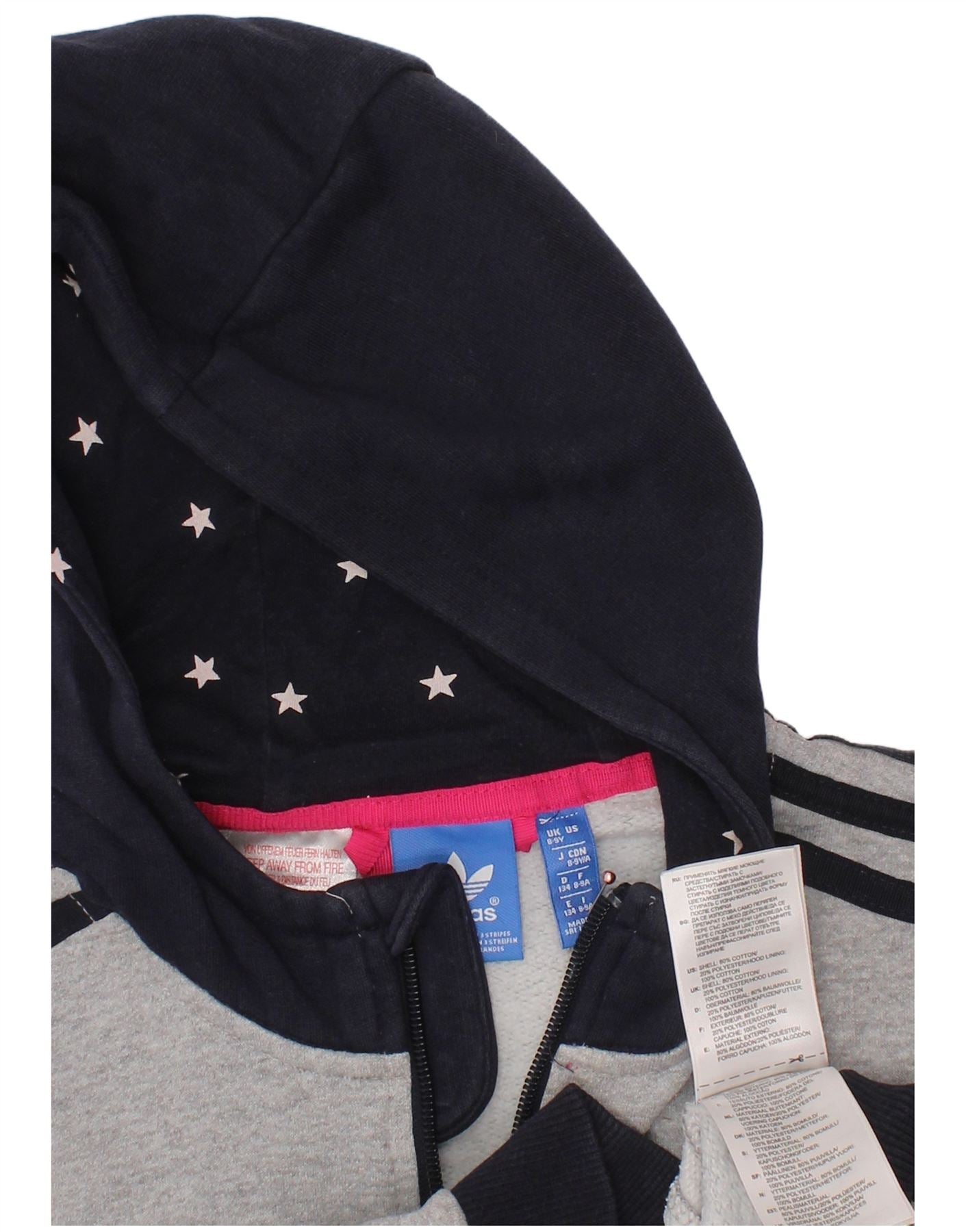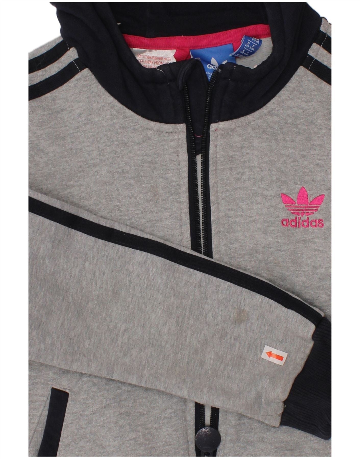 Dziewczęcy sweter z kapturem i zamkiem ADIDAS 8-9 lat, szara, bawełniana w bloki kolorów