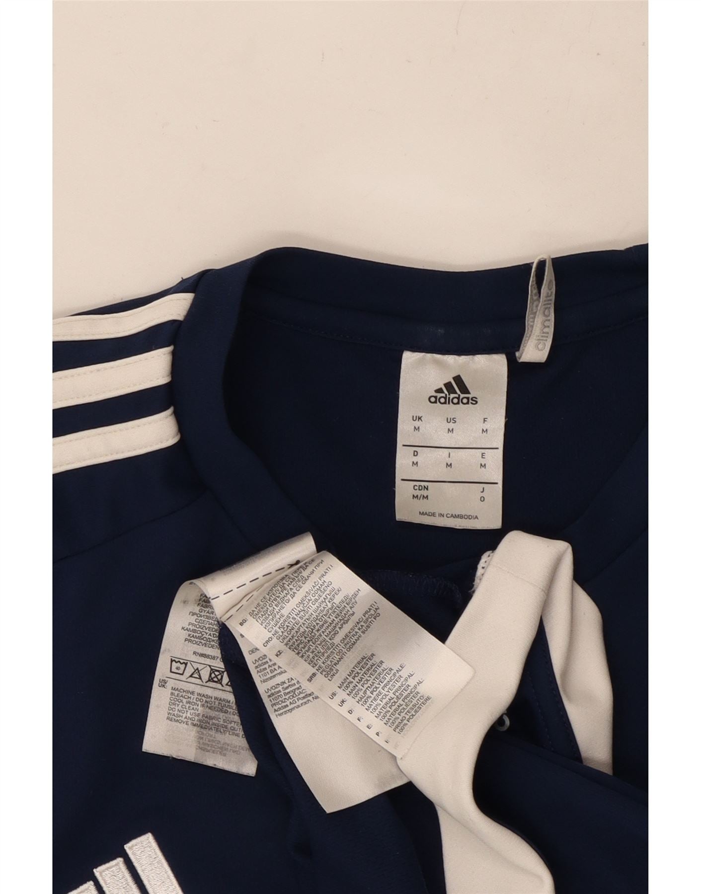 Męska koszulka ADIDAS Climalite Top, średni granatowy poliester z blokami kolorów
