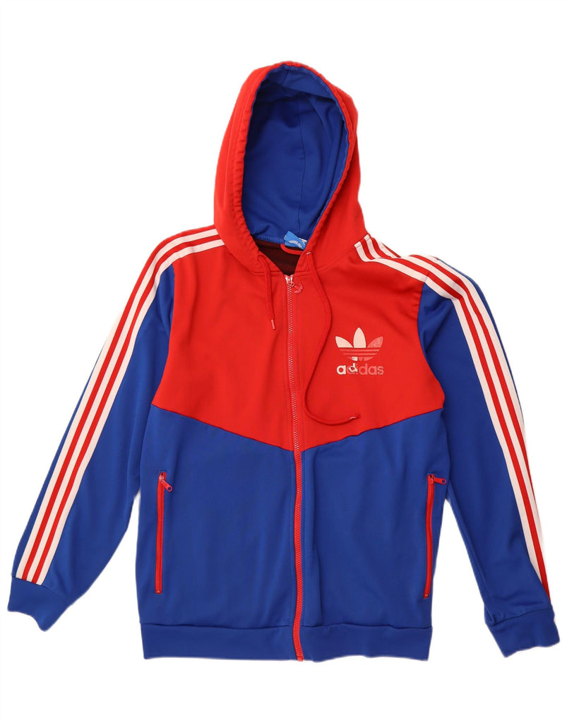 Męski sweter z kapturem i zamkiem błyskawicznym ADIDAS, duży niebieski poliester z blokami kolorów
