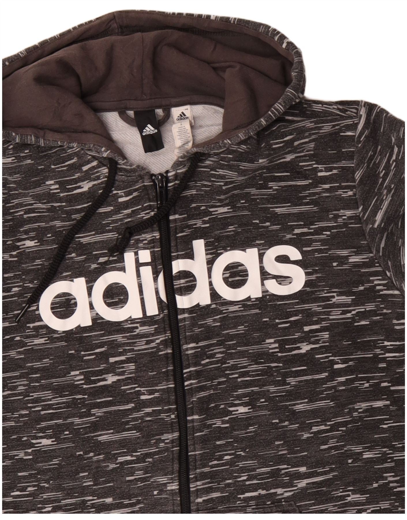 Męski sweter z kapturem i zamkiem błyskawicznym ADIDAS, średnioszary, bawełniany w cętki