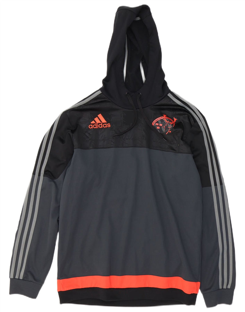 Męski sweter z kapturem ADIDAS Munster do rugby, duży szary poliester z blokami kolorów