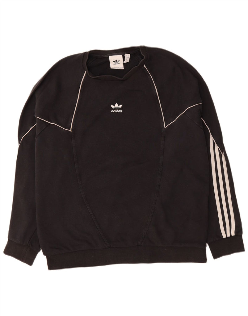 - AI Description: This Adidas mens sweatshirt jumper is crafted from a comfortable black knit fabric. It features a classic round neck and long sleeves. The pullover style ensures ease of wear. A regular fit offers comfortable movement. A prominent graphic logo provides a distinctive accent. This design combines stretch and comfort for everyday wear, perfect for a sports style.