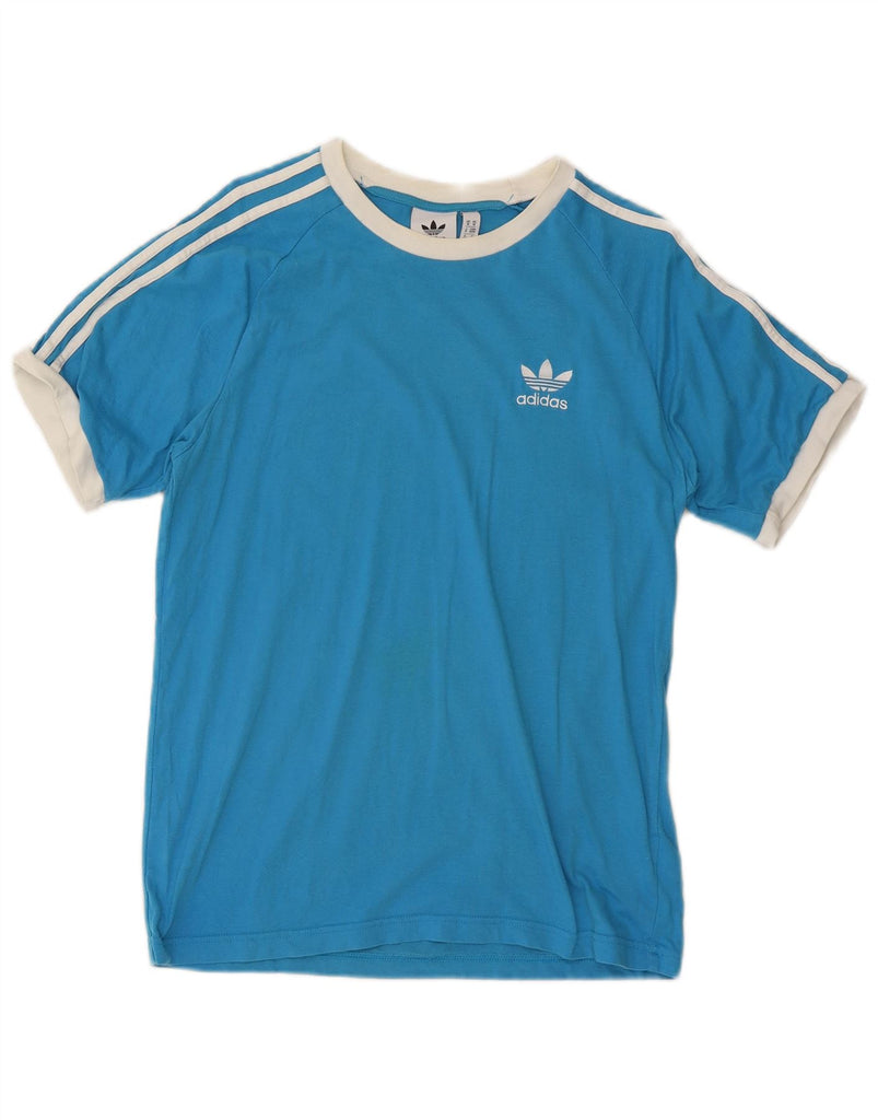T-shirt męski ADIDAS, bawełniany, średnioniebieski, z blokami kolorów