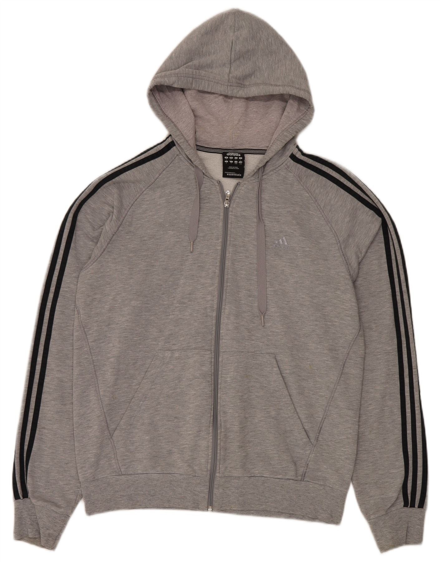 Adidas Męski sweter z kapturem i zamkiem błyskawicznym, duży, szary, nakrapiany, bawełniany