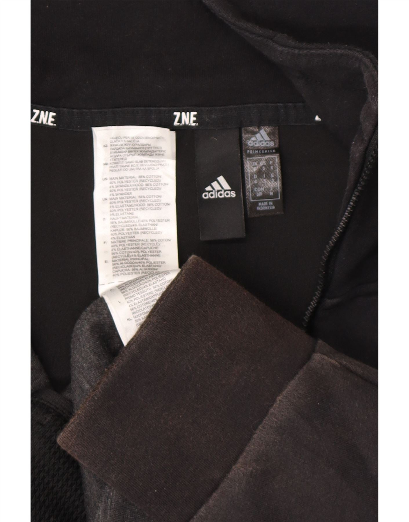 - Dokładny skład materiału: Główny materiał: 56% bawełna, 40% poliester z recyklingu, 4% elastan. Podszewka kaptura: 65% bawełna, 35% poliester z recyklingu.