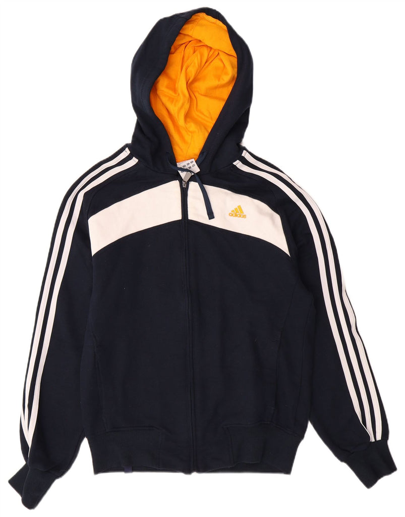 Męski sweter z kapturem i zamkiem ADIDAS UK 34/36, mały, granatowy, bawełniany z blokami kolorów