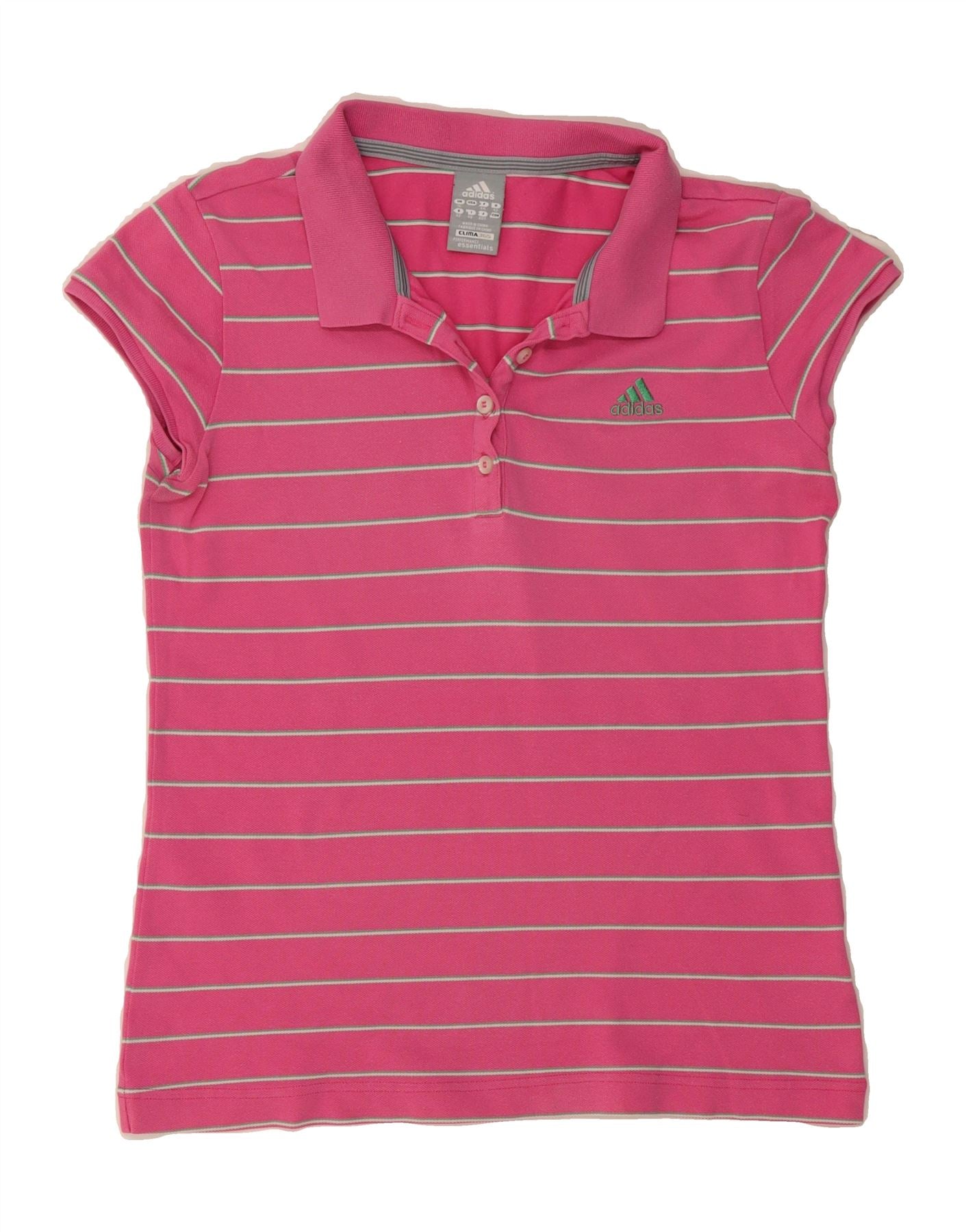 ADIDAS Womens Clima 365 Polo Shirt UK 16 Large Pink Striped Cotton
