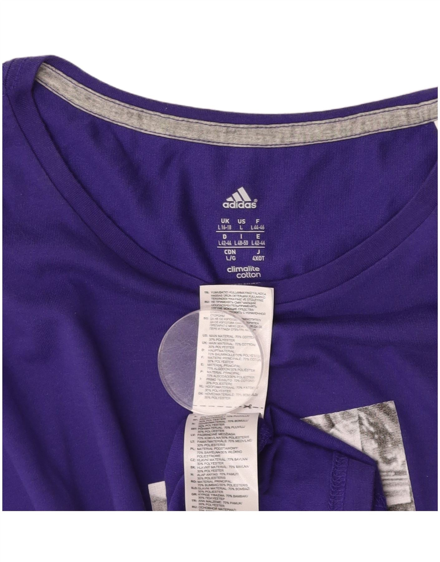 Home > Adidasa > Damskie > Najfatalniejszy > Damska koszulka ADIDAS Climalite Graphic Top UK 16/18, duża fioletowa bawełna