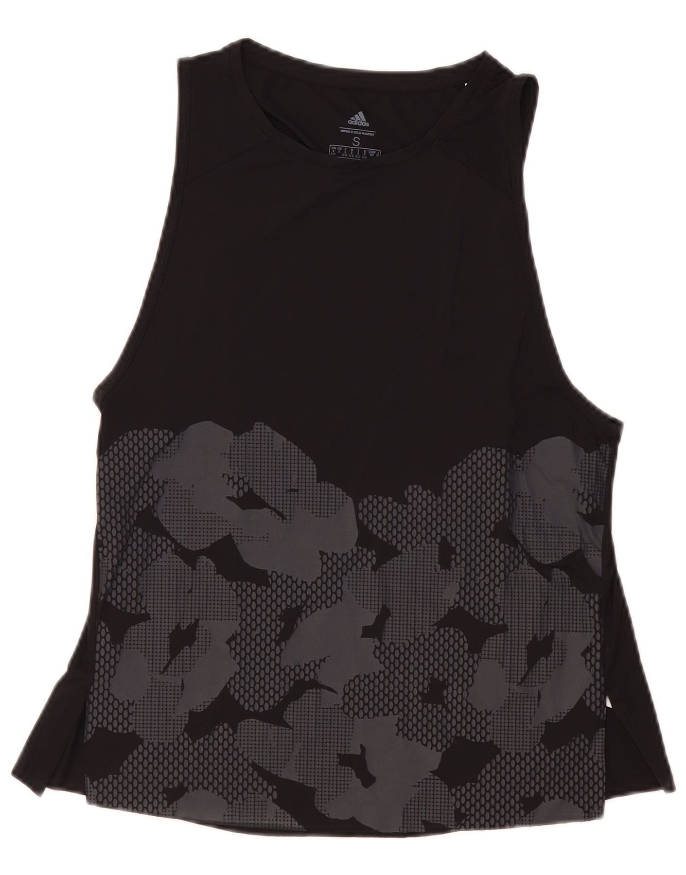 Damski top ADIDAS Climalite z kamizelką UK 8/10, mały, czarny nylon w kamuflażu