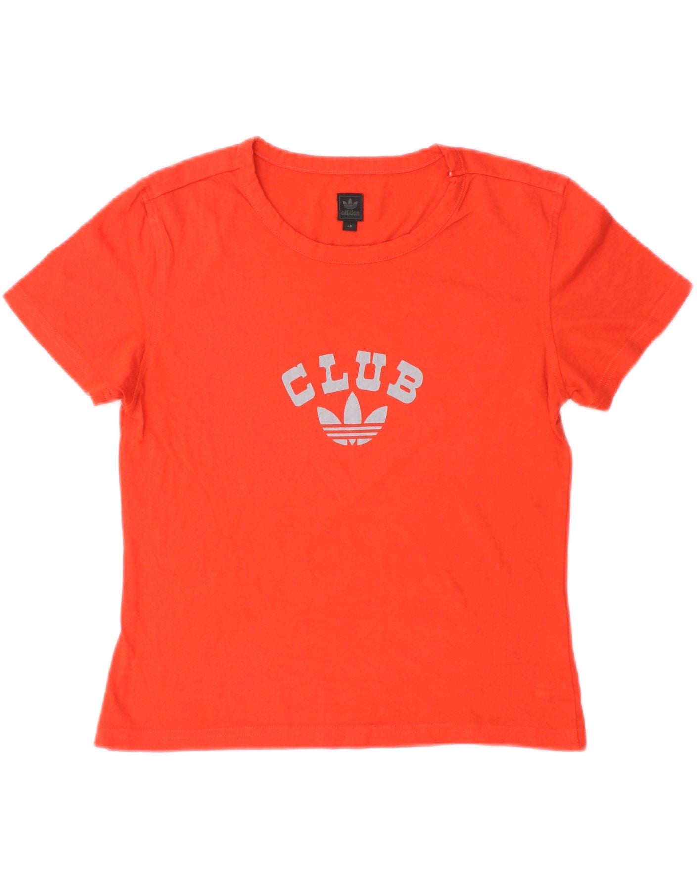 ADIDAS Womens Club Crop Graphic T-Shirt Top UK 14 Medium Orange Cotton