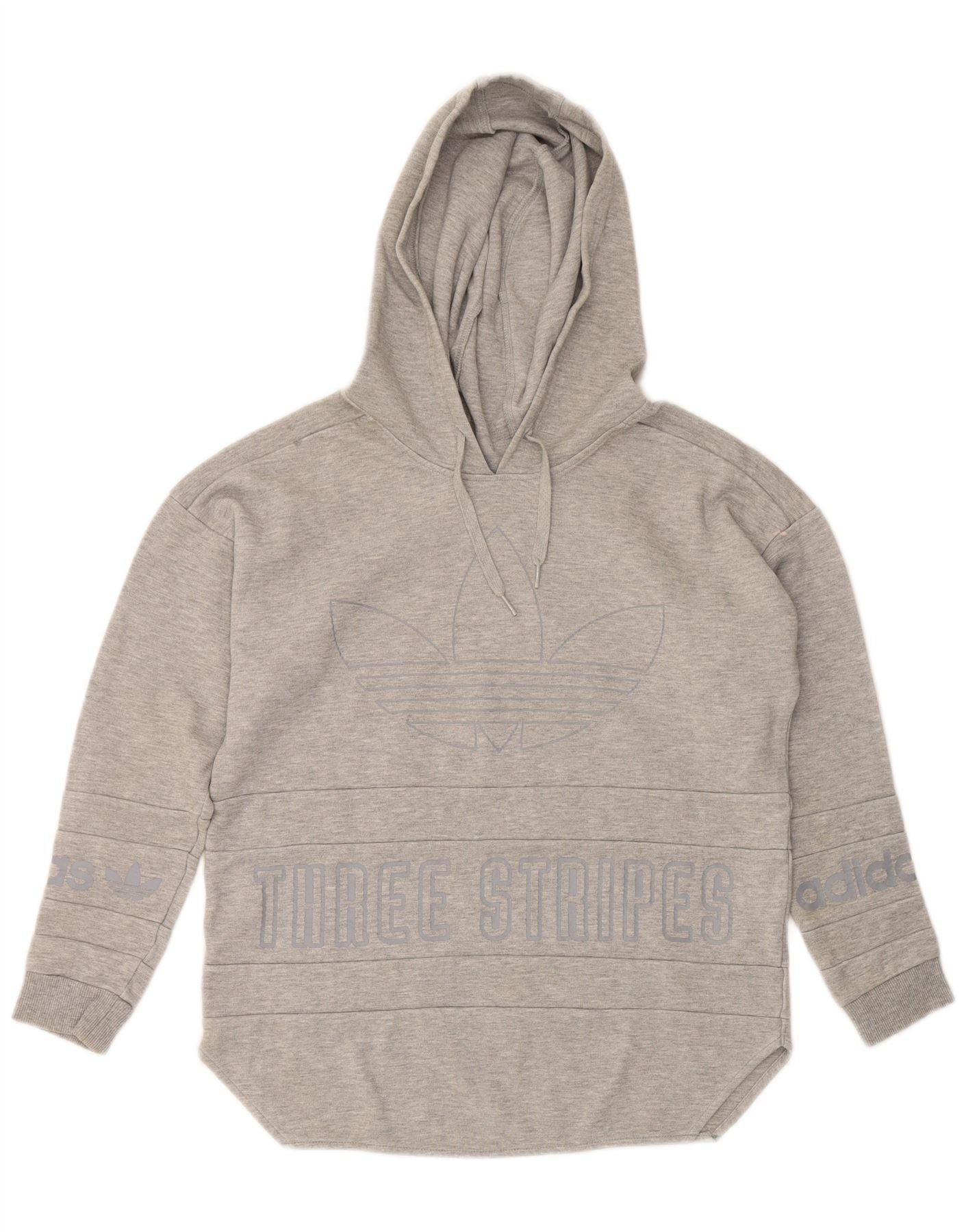 Damska bluza z kapturem ADIDAS z grafiką, oversize UK 8, mała, szara bawełna