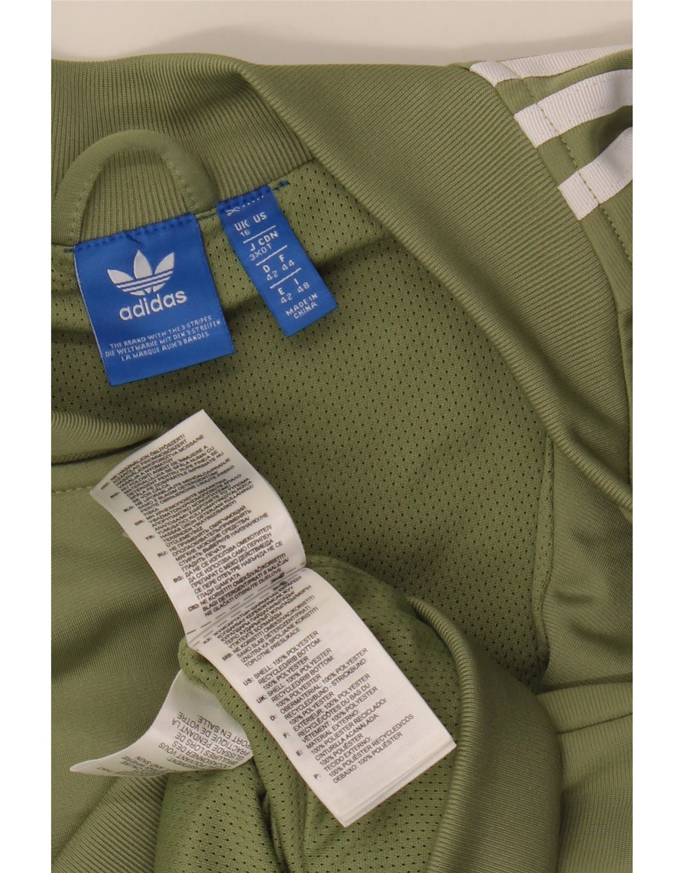 ADIDAS Womens Graphic Tracksuit Top Jacket UK 16 Large Khaki Polyester