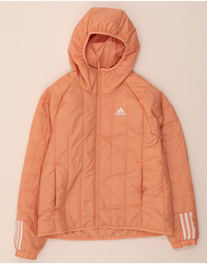 ADIDAS Womens Hooded Padded Jacket UK 12/14 Medium Orange Polyester