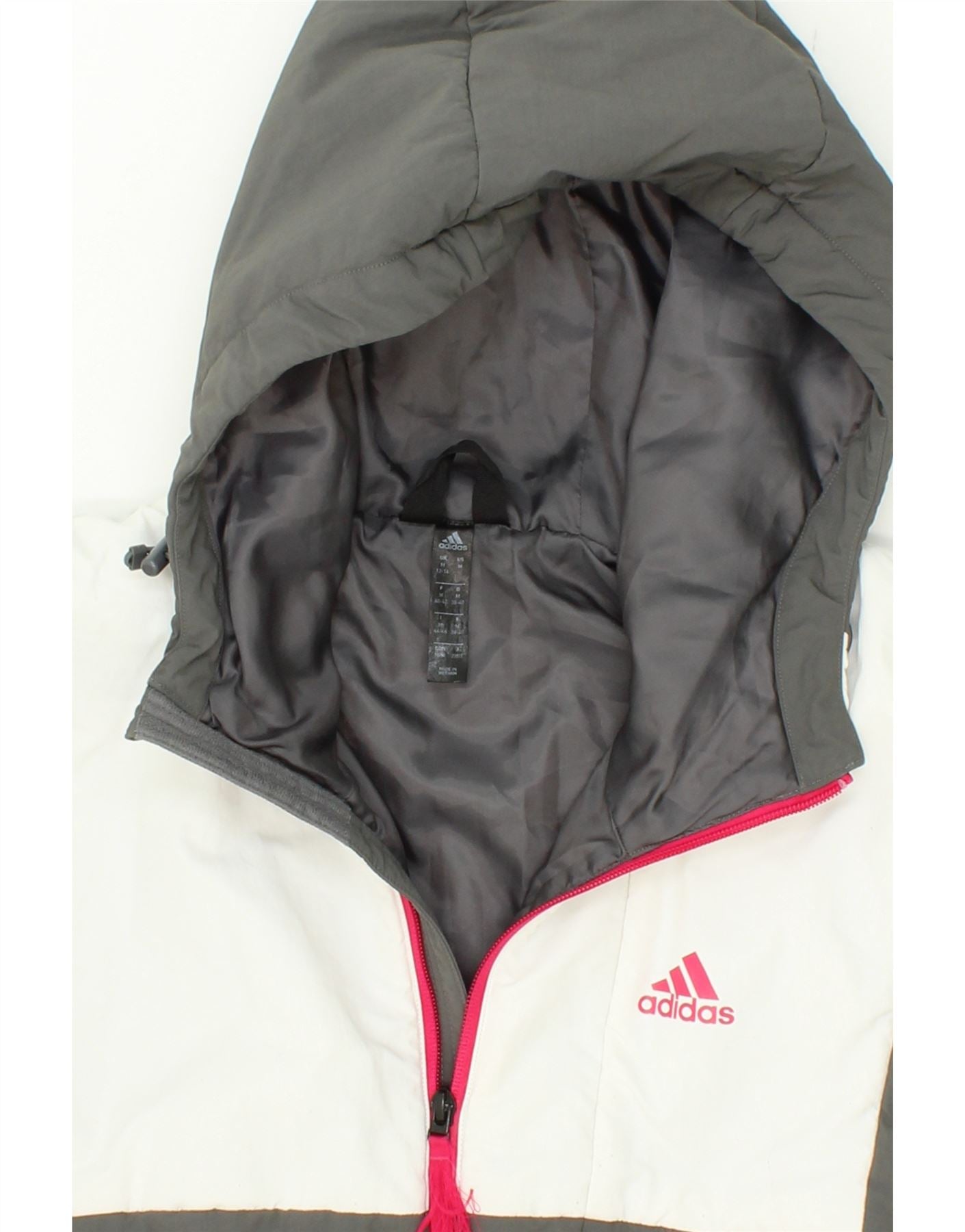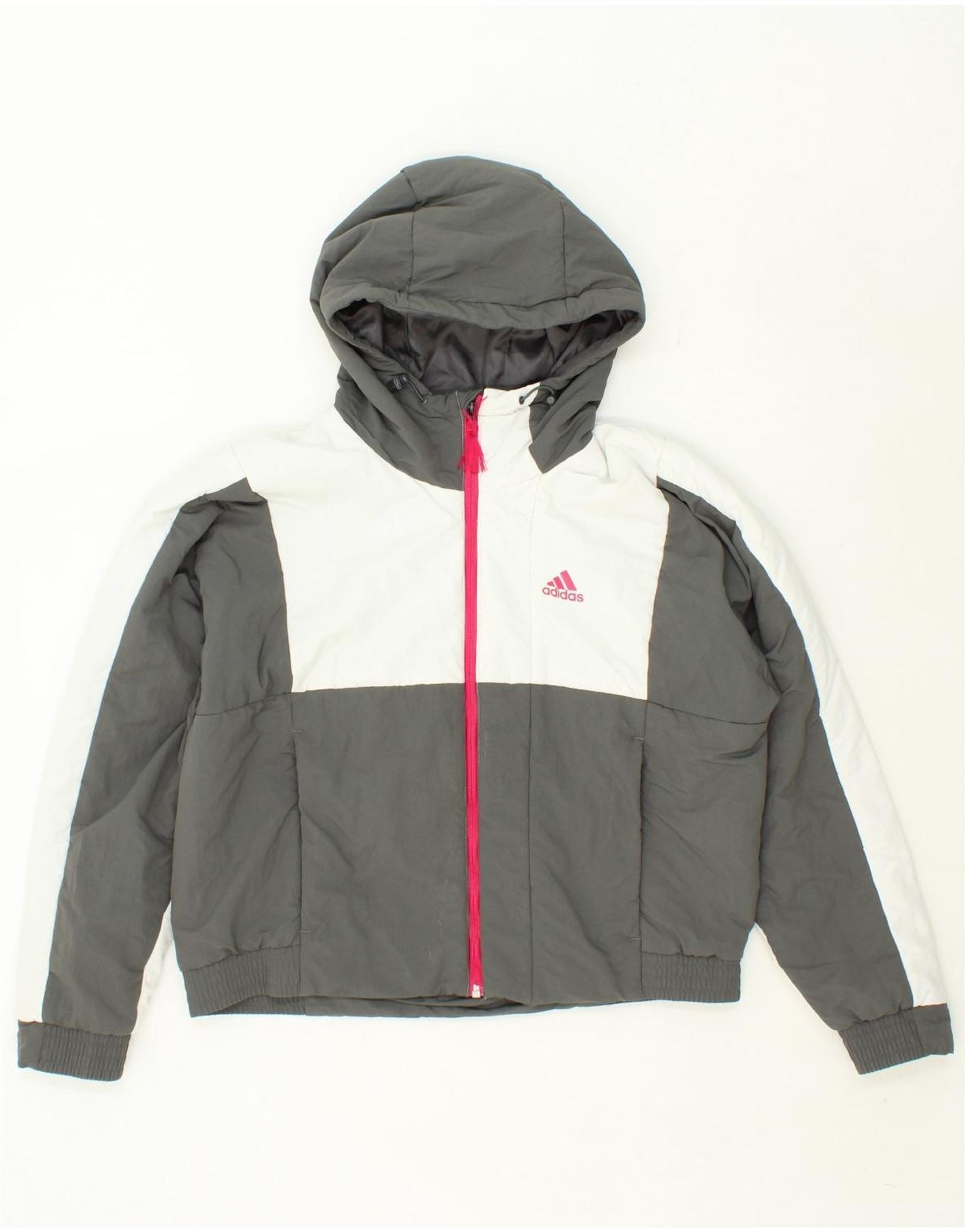 ADIDAS Womens Hooded Windbreaker Jacket UK 12/14 Medium Grey Colourblock