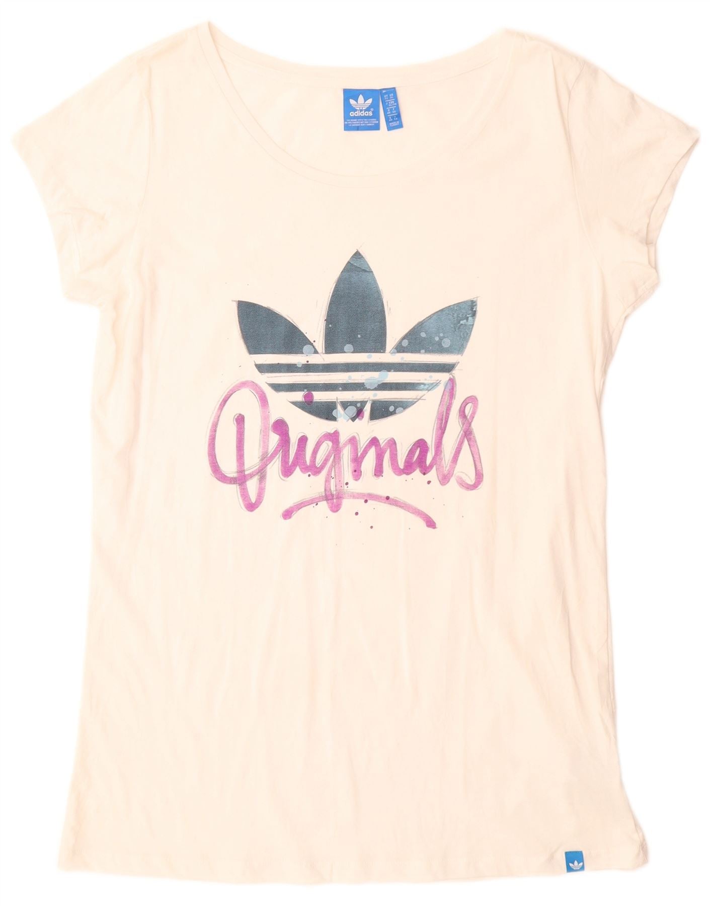 Damska koszulka ADIDAS z grafiką o długim kroju, UK 22 XL, biała bawełna