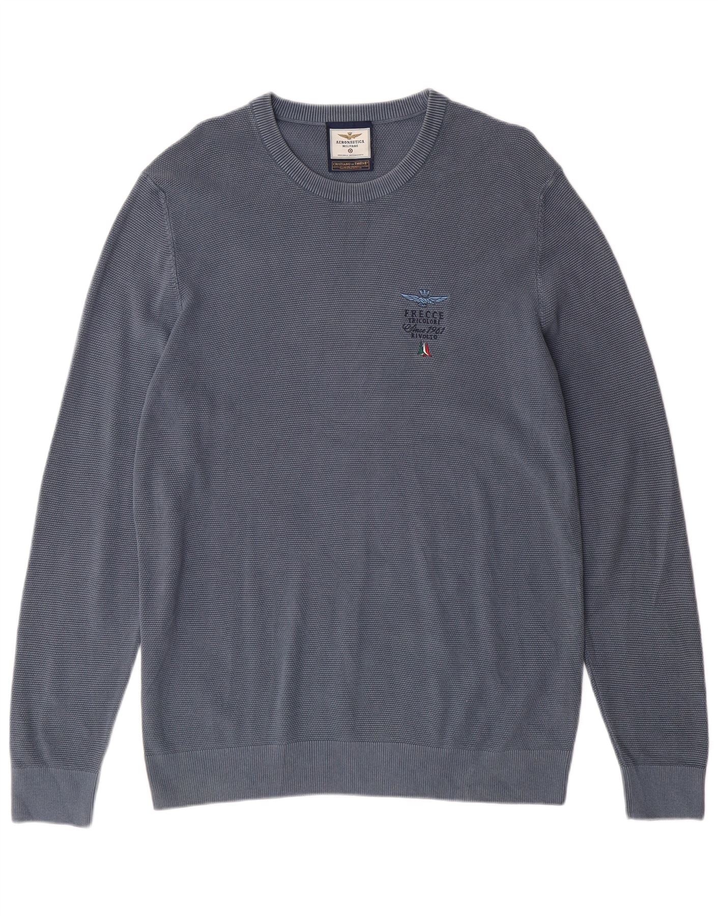 Męski sweter z okrągłym dekoltem AERONAUTICA MILITARE XL, niebieska bawełna