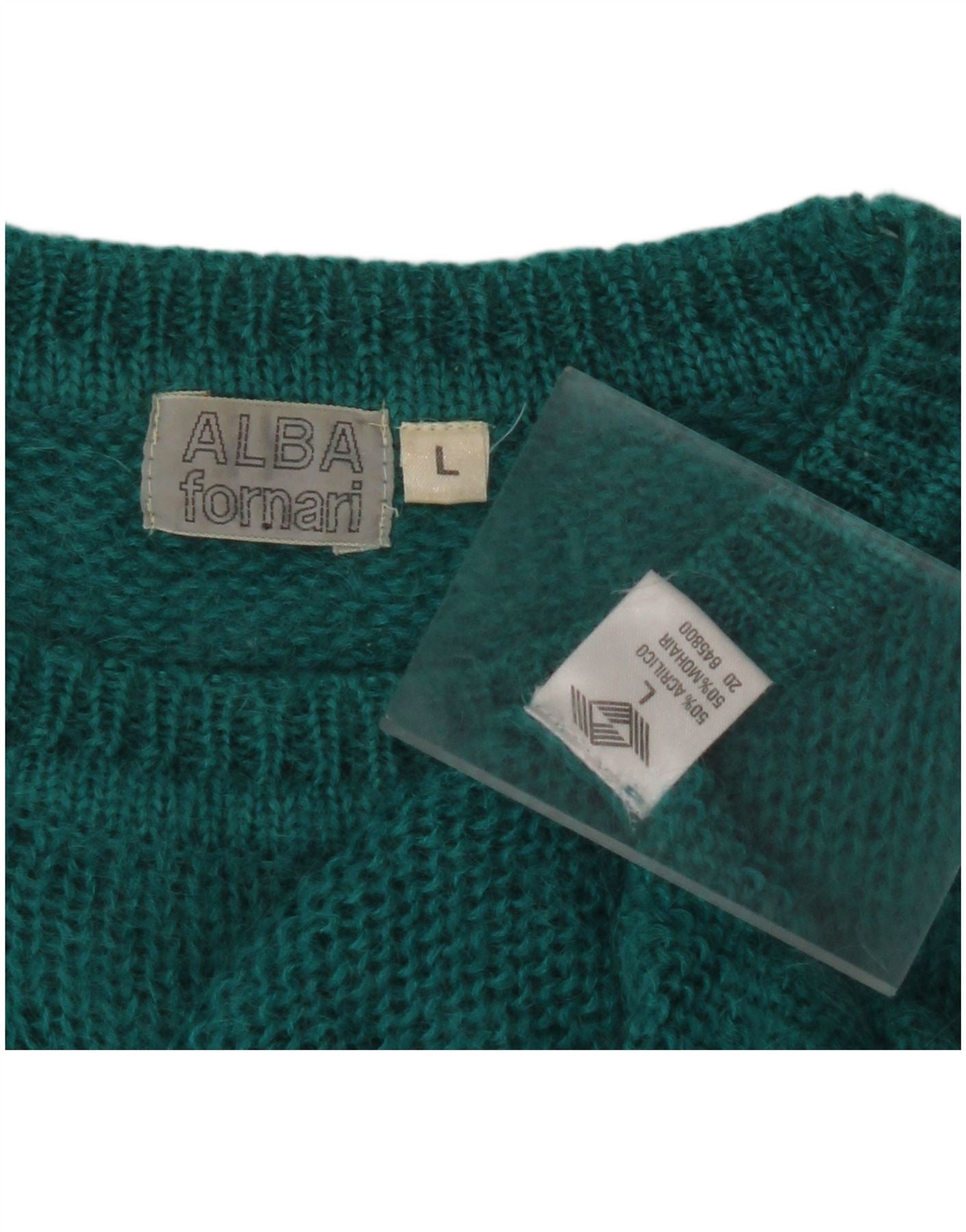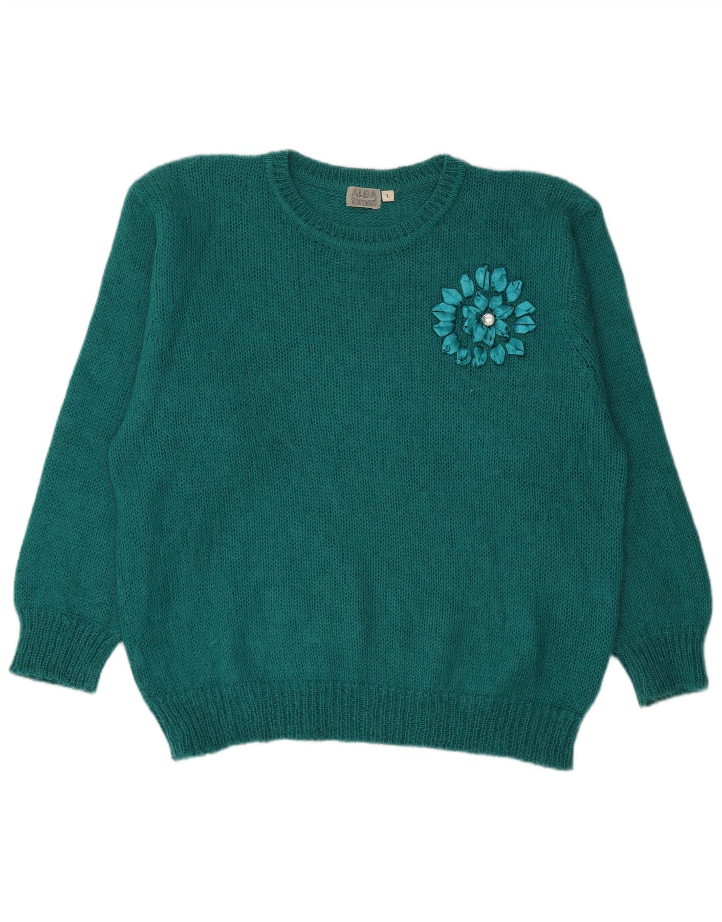 Damski sweter z okrągłym dekoltem ALBA FORNARI UK 16, duży, zielony w kwiaty