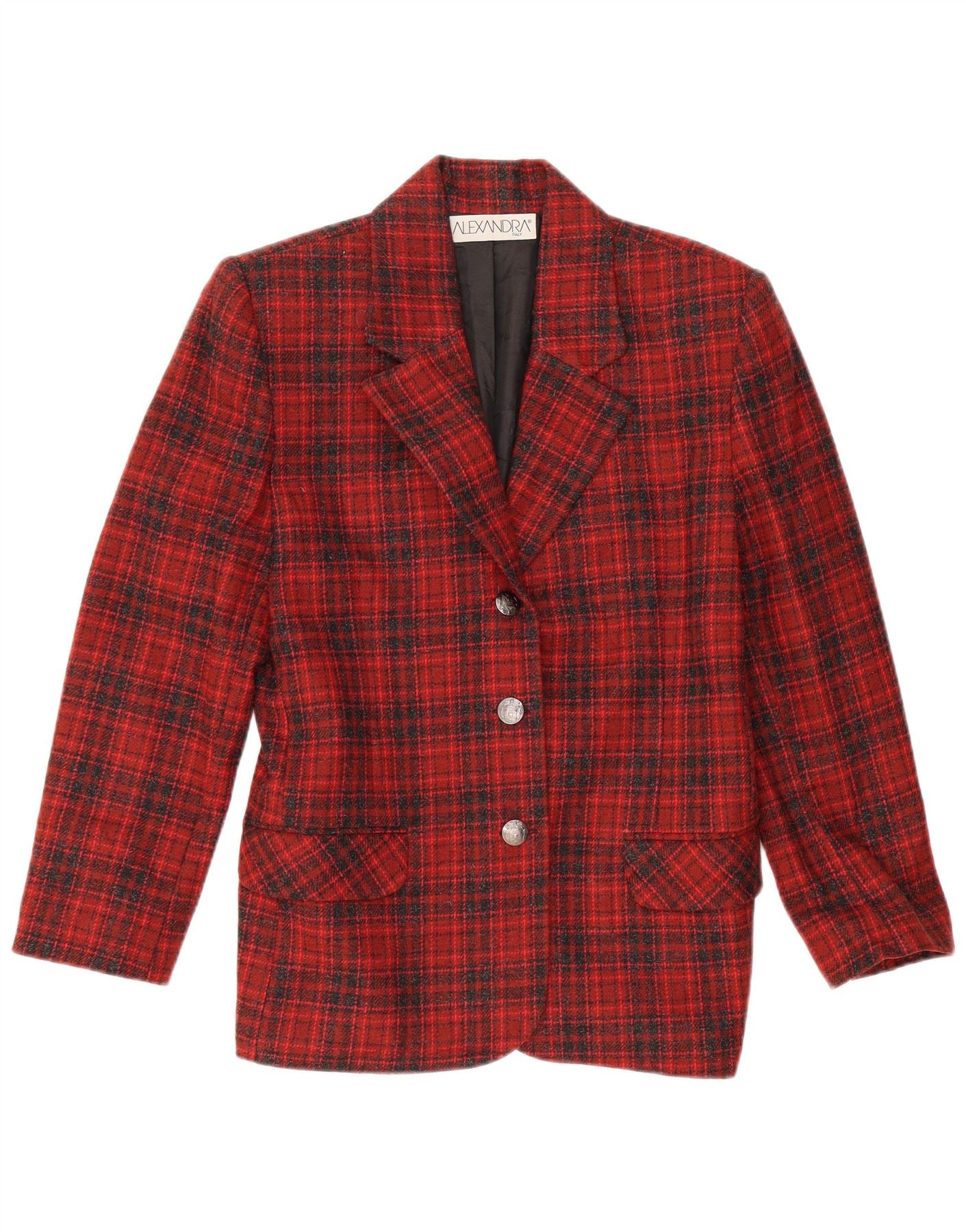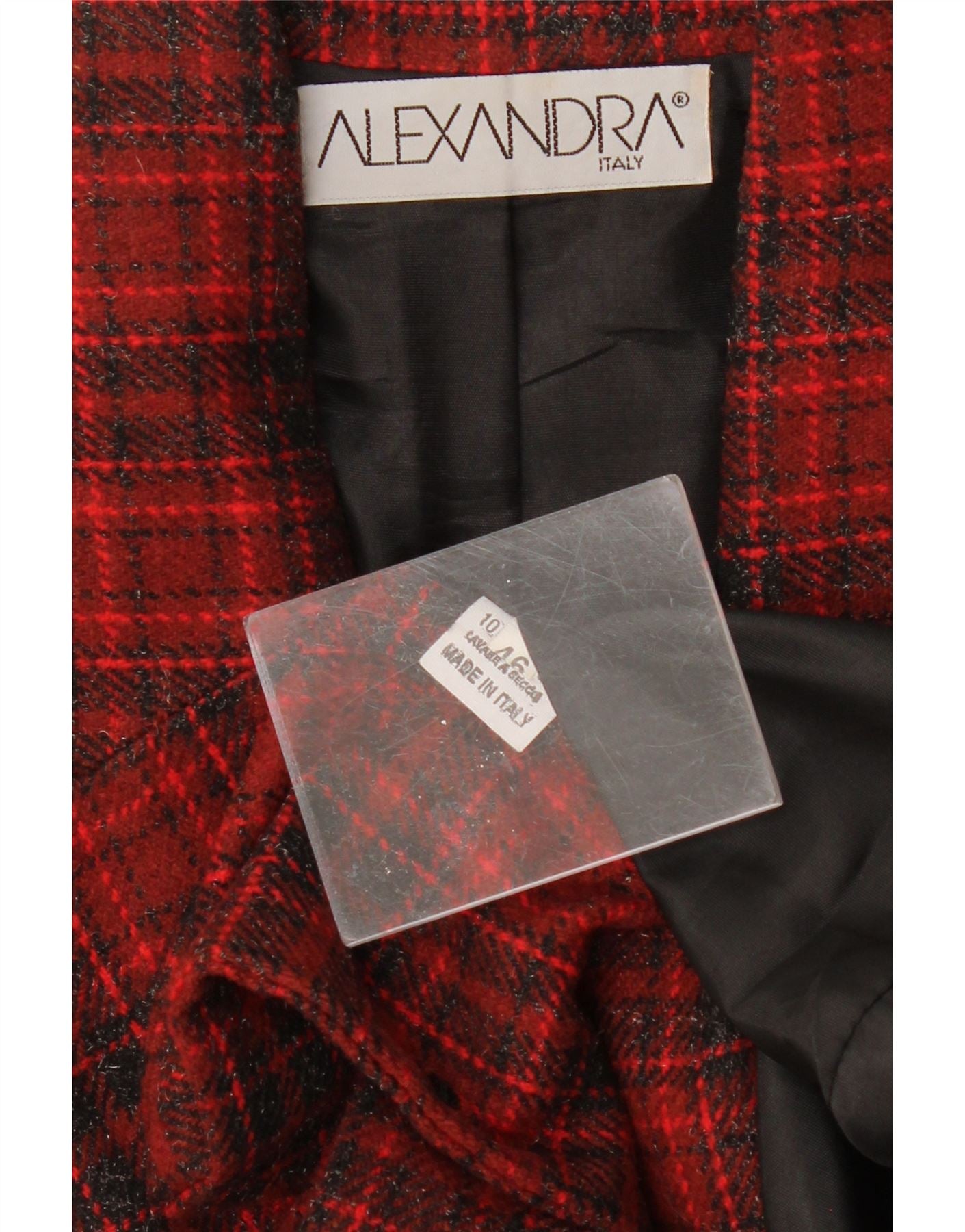 Damska marynarka ALEXANDRA zapinana na 3 guziki IT 46, duża, wełniana w czerwoną kratę