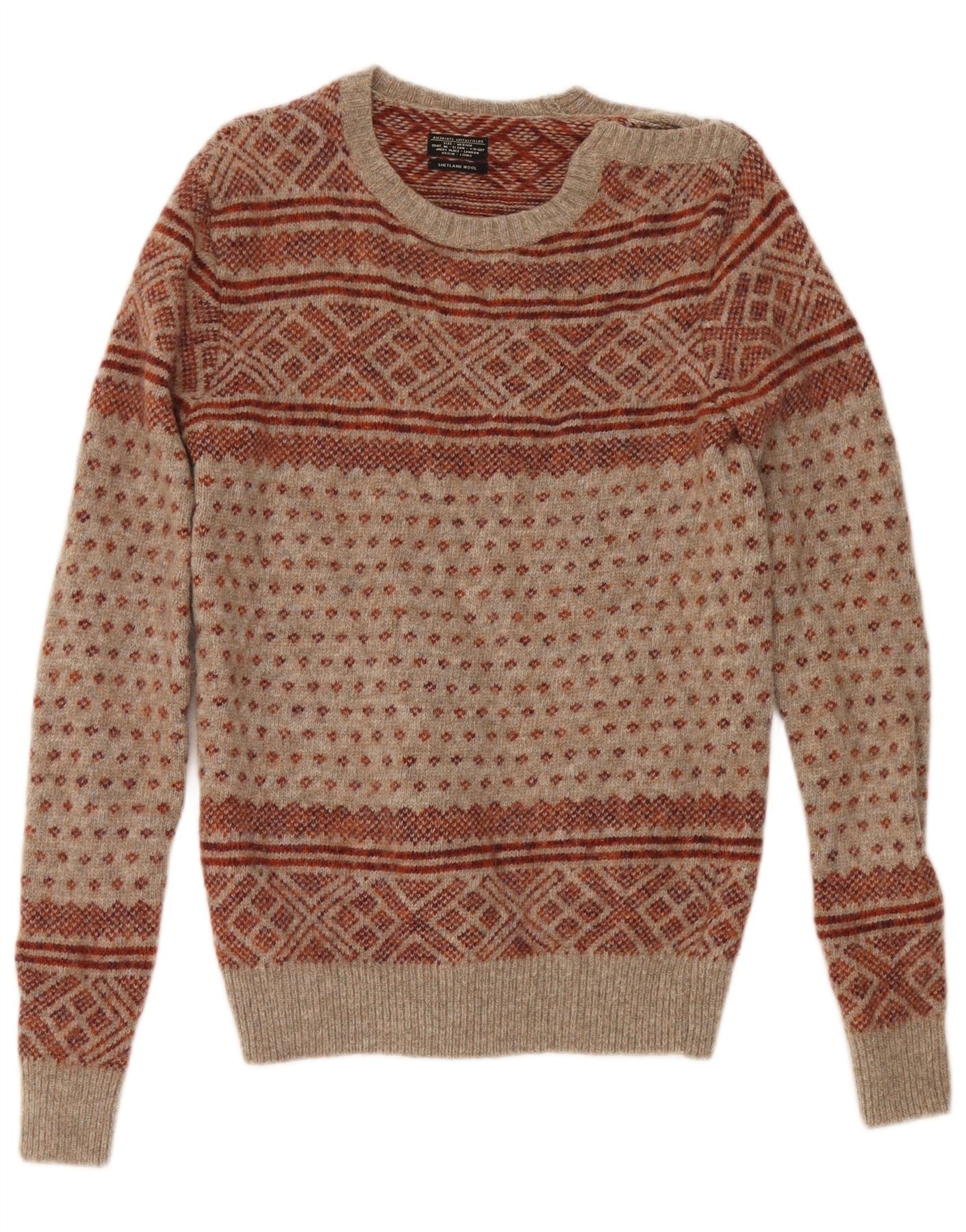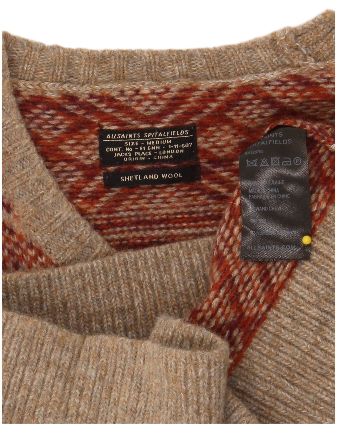 ALL SAINTS Womens Crew Neck Jumper Sweater UK 12 Medium Beige Fair Isle