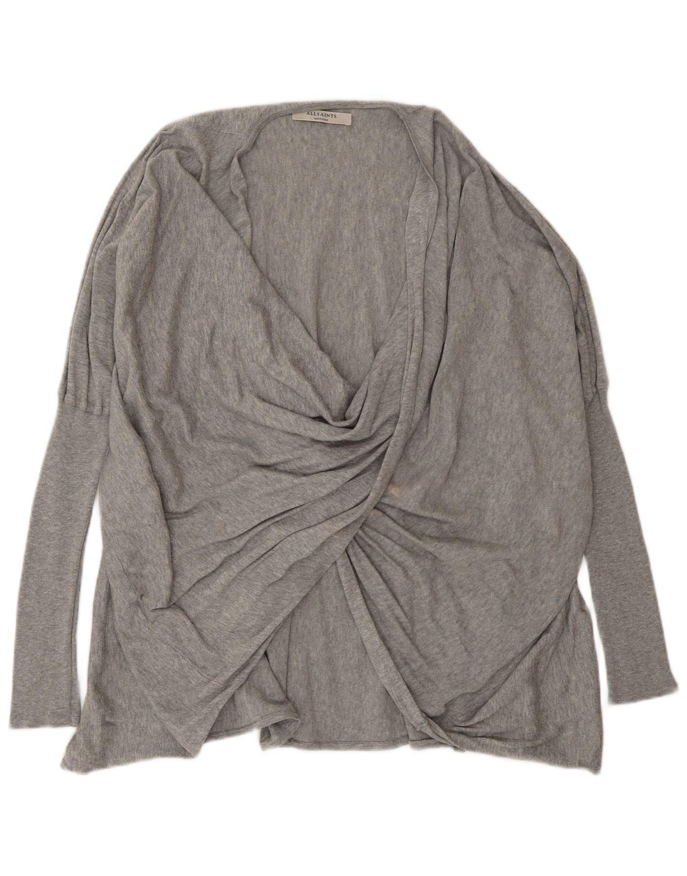 Damski sweter oversize All Saints z dekoltem w kształcie litery V, UK 14, średni szary
