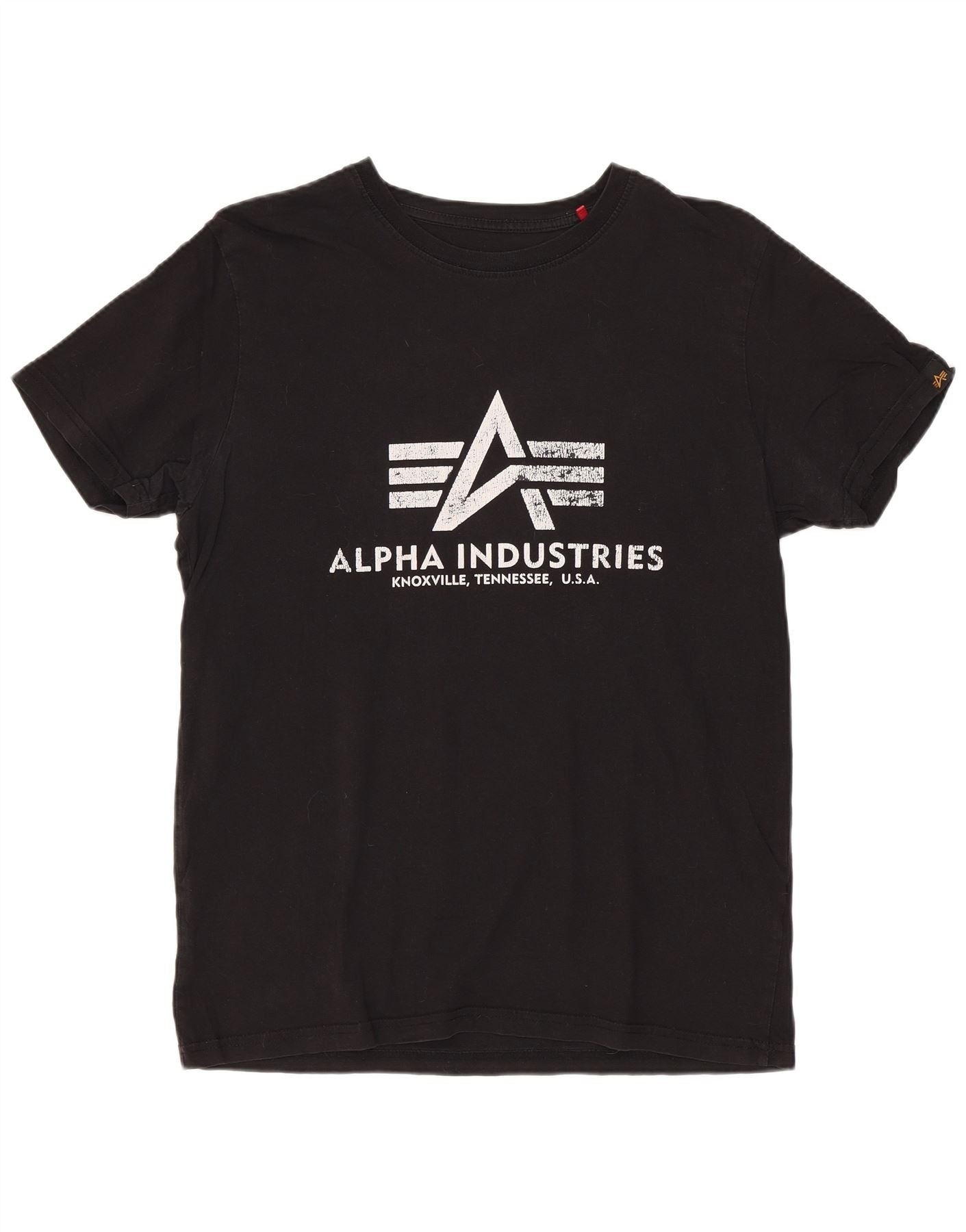 Damska koszulka z grafiką ALPHA INDUSTRIES Top UK 10, mała, czarna, bawełniana