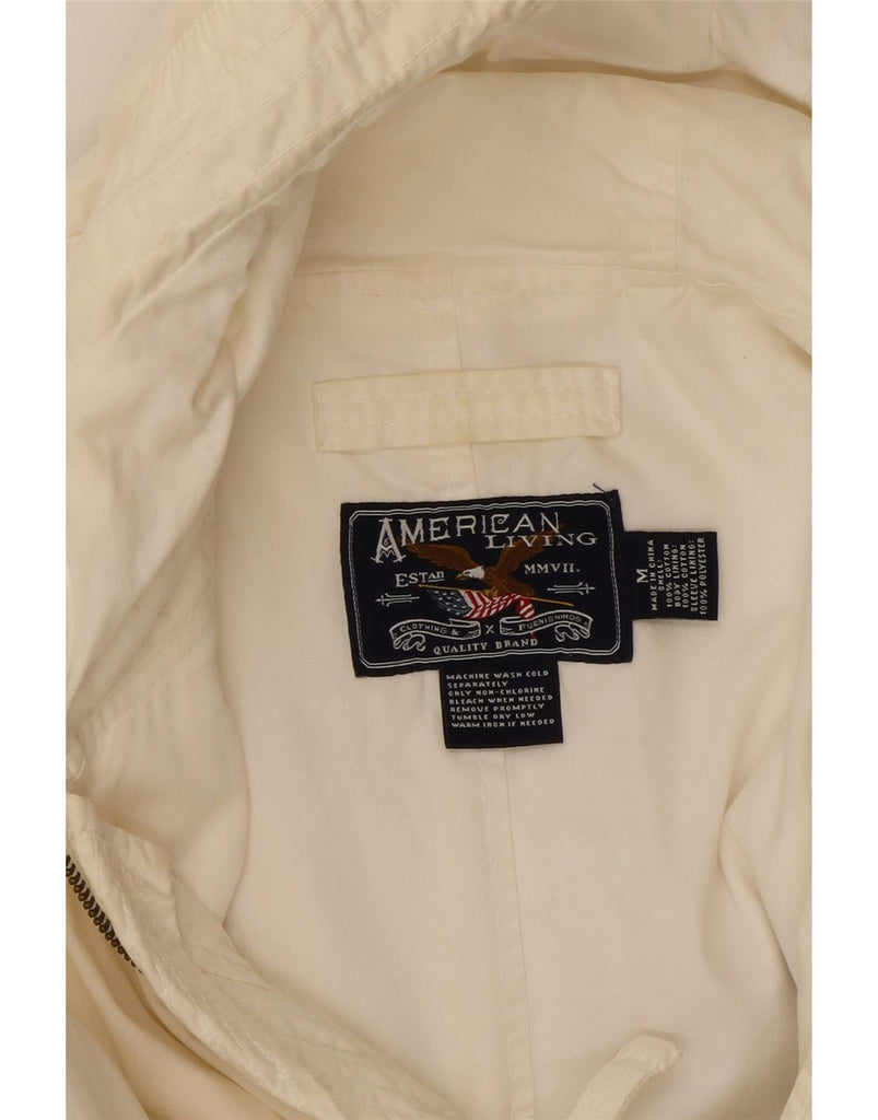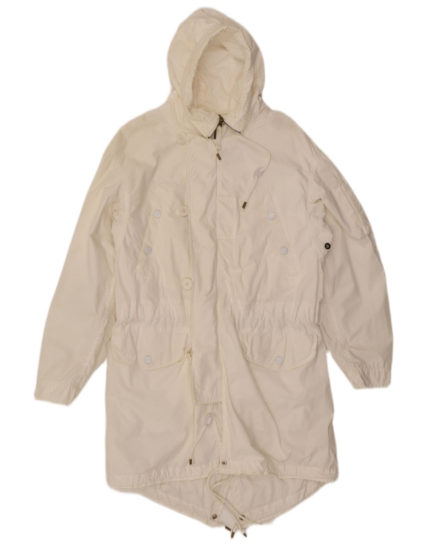 AMERICAN LEGEND Mens Graphic Hooded Parka Jacket UK 38 Medium White Cotton