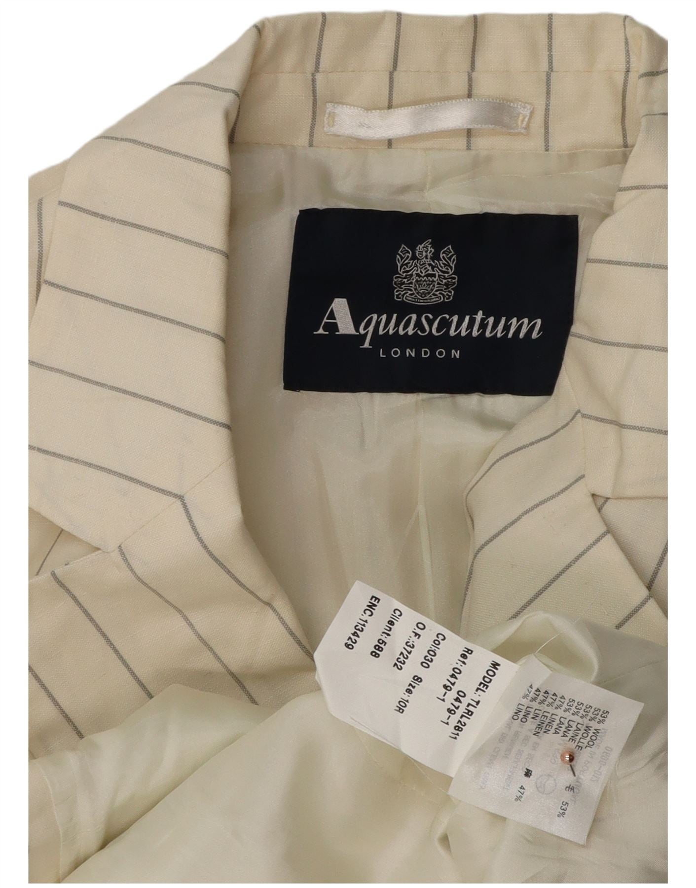 Home > Damskie > Odzież Depopa > Damska marynarka zapinana na 2 guziki AQUASCUTUM UK 10 Mała biała wełna w prążki