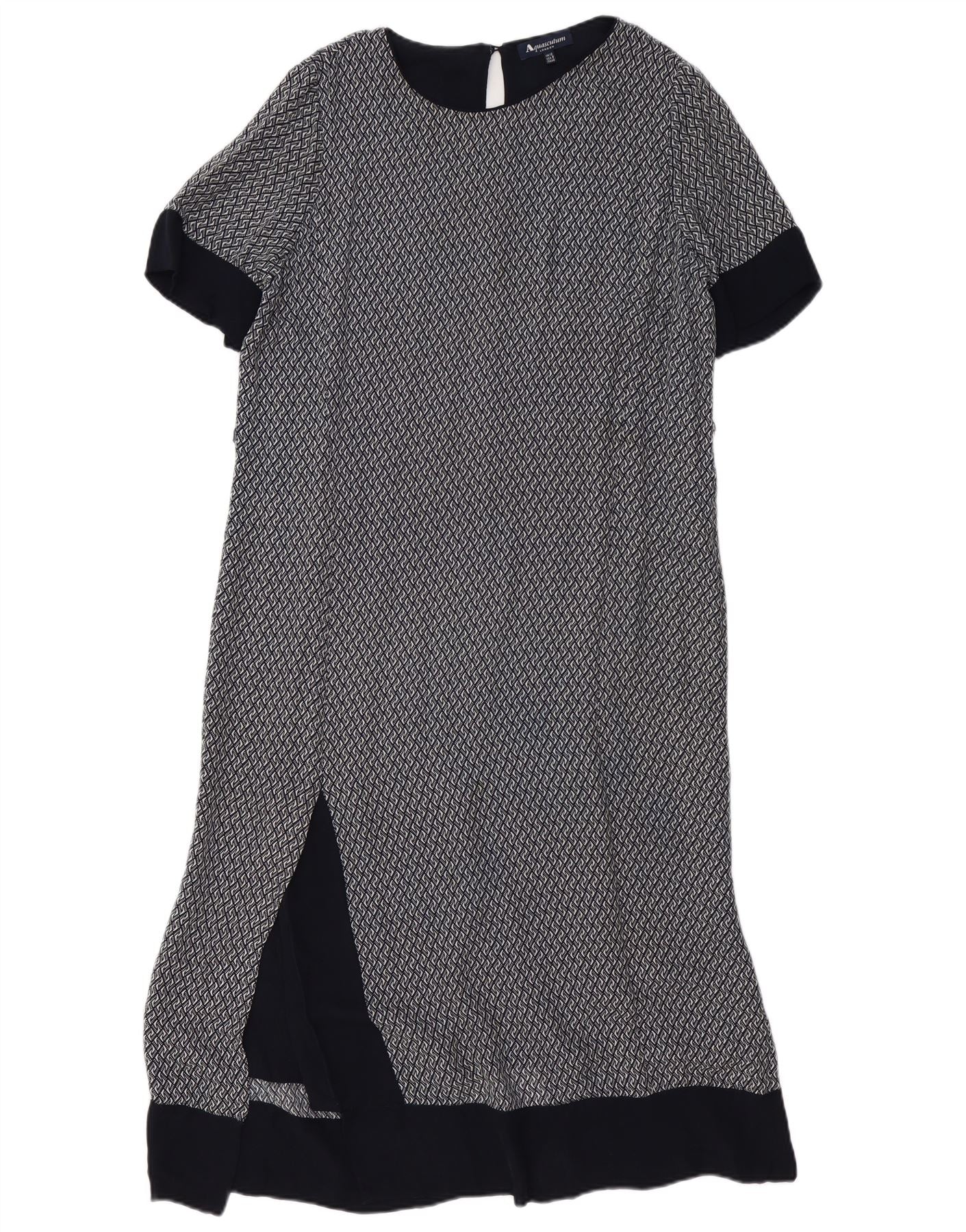 Damska sukienka maxi AQUASCUTUM UK 12 Średni granatowy geometryczny jedwab